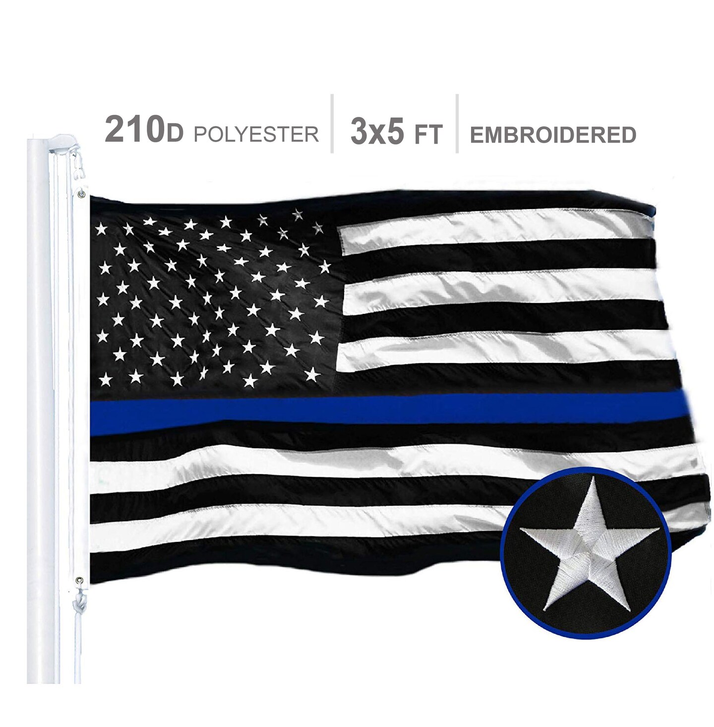 Thin Blue Line Flag 210D Embroidered Polyester 3x5 Ft