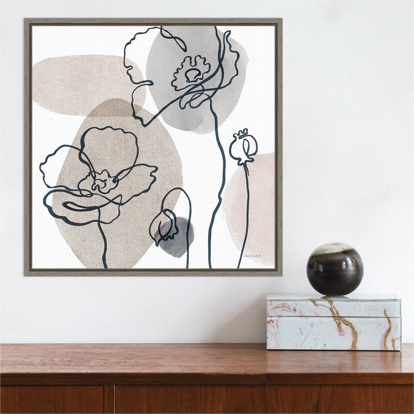 Think Neutral 03A (Floral) by Lisa Audit 16-in. W x 16-in. H. Canvas Wall Art Print Framed in Grey