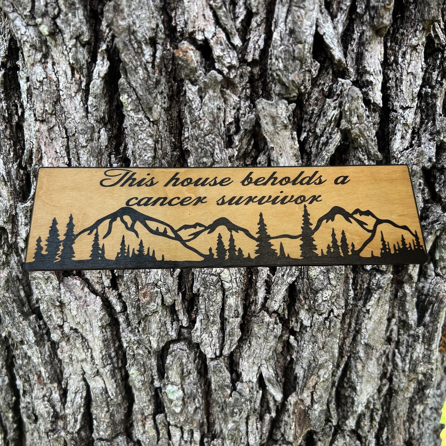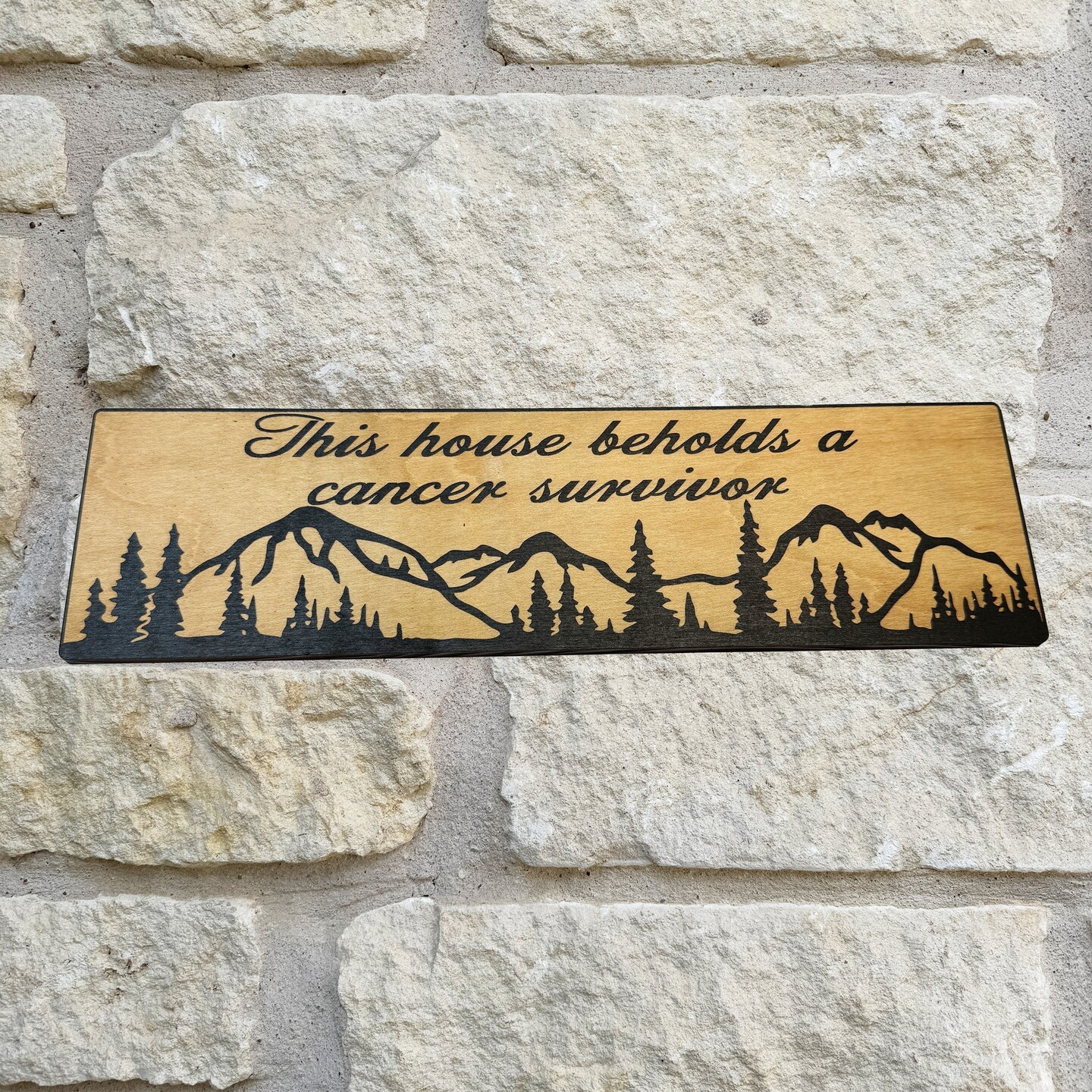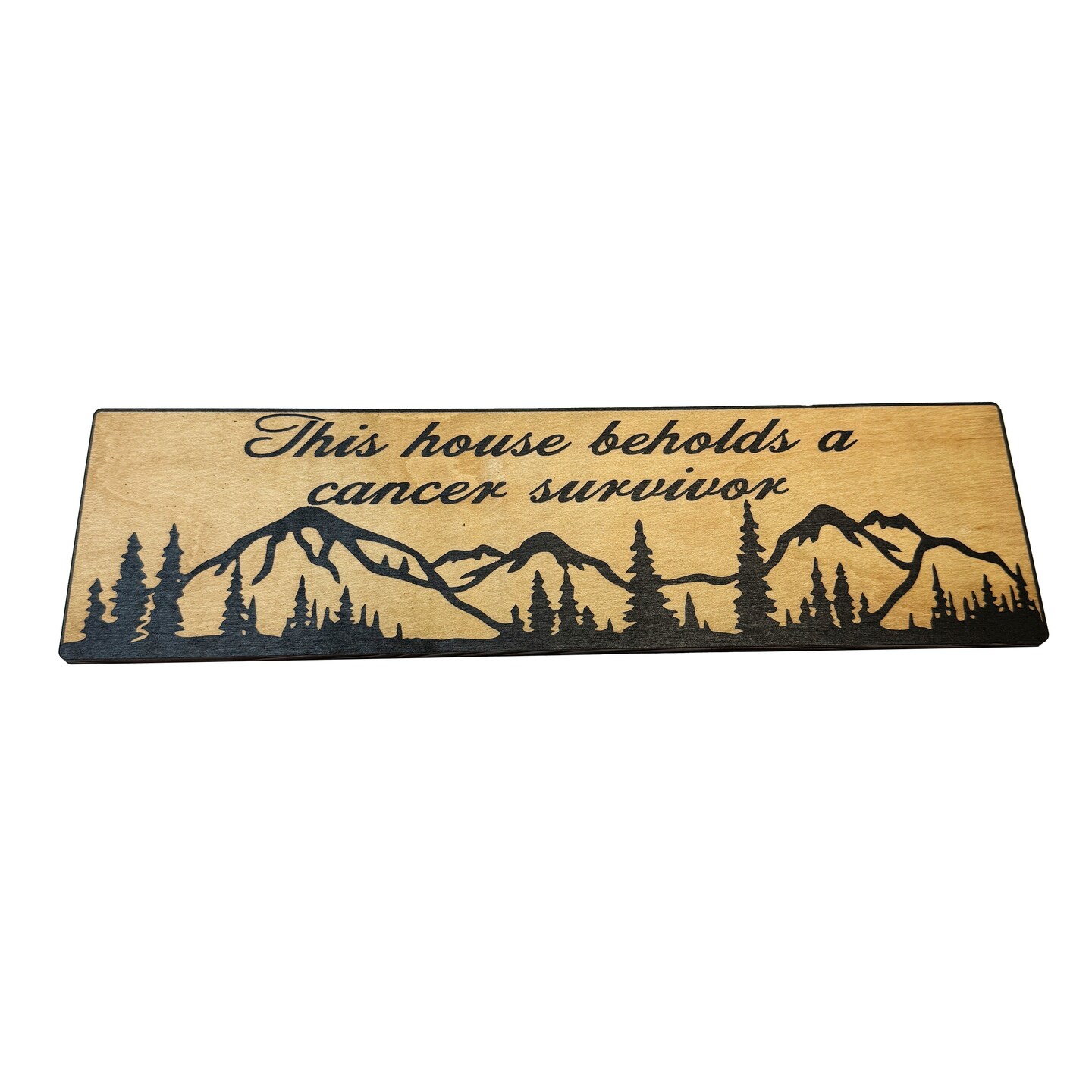 This House beholds a Cancer Survivor Mountain Scene - BLACK Sign 4x12