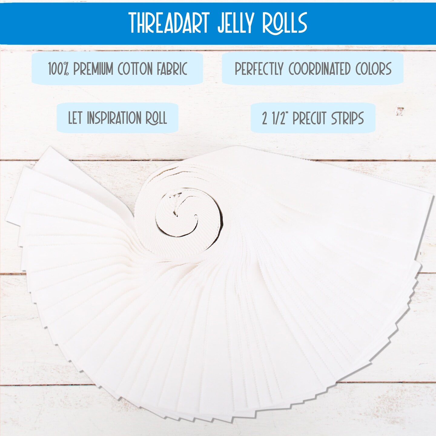 ThreadArt Jelly Roll Fabric Strips for Quilting, Crafting, and Sewing, 40 Precut Fabric Strips in Solids and Prints, Premium Cotton for Quilts, Crafts, Rugs, Blankets, Clothing and More