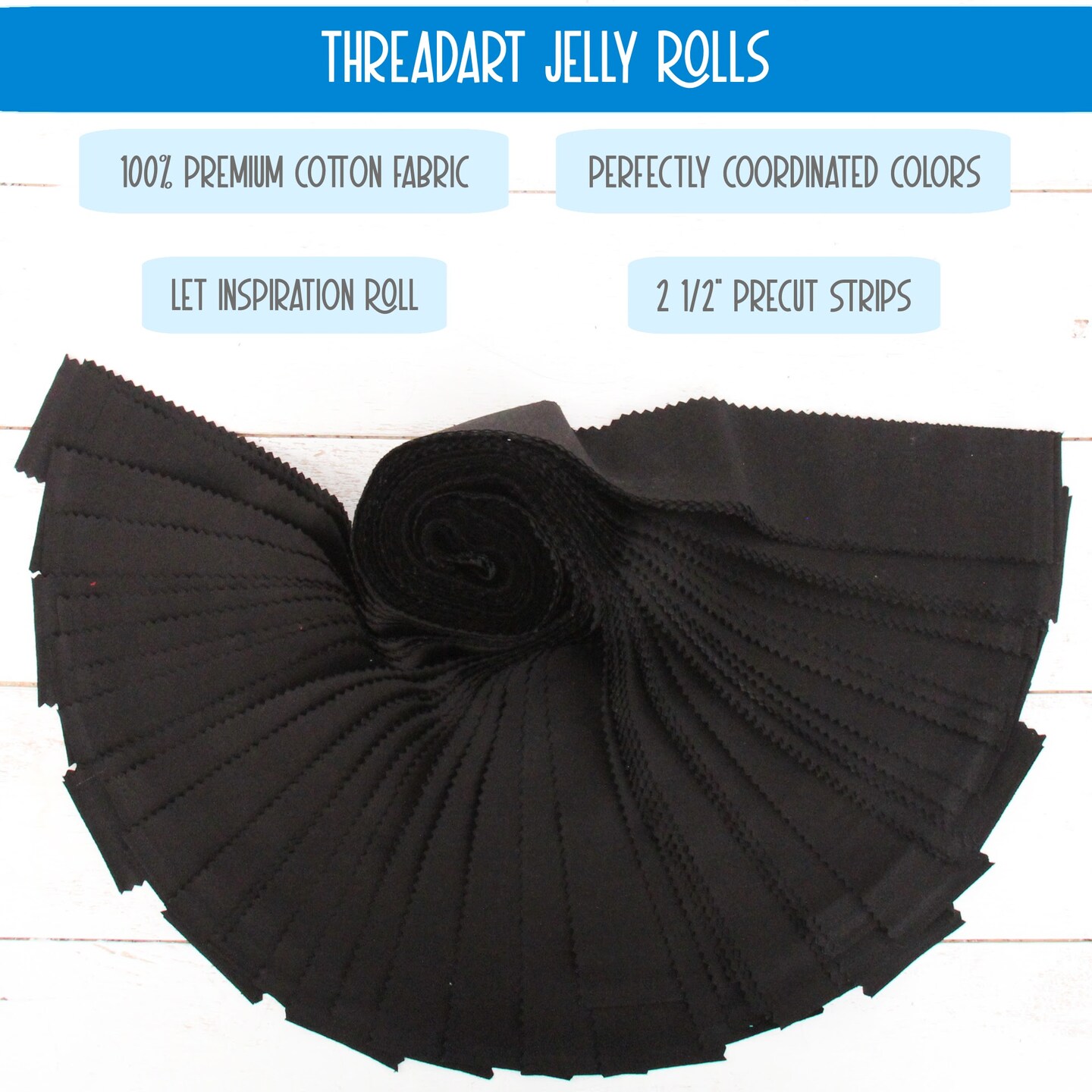 ThreadArt Jelly Roll Fabric Strips for Quilting, Crafting, and Sewing, 40 Precut Fabric Strips in Solids and Prints, Premium Cotton for Quilts, Crafts, Rugs, Blankets, Clothing and More