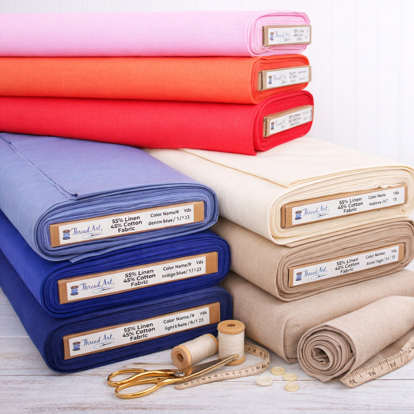 Threadart Linen Fabric By The Yard - Embroidery Fabric 55" Width- Premium Cotton Linen Fabric for Embroidery, Cross Stitch, Apparel, Linen Canvas, Home Décor