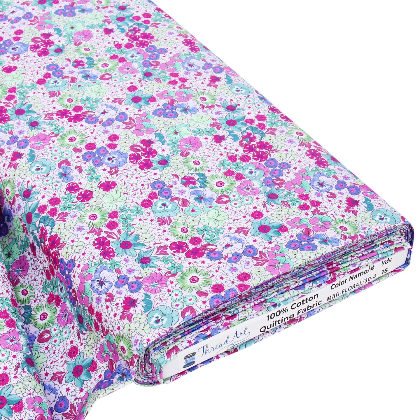 ThreadArt Premium Cotton Quilting Fabric By the Yard, 3yd or 10yd Cuts - Spring Picnic Collection - Gingham & Florals - 44" Width - 100% Cotton - Quilting, Sewing, Crafts