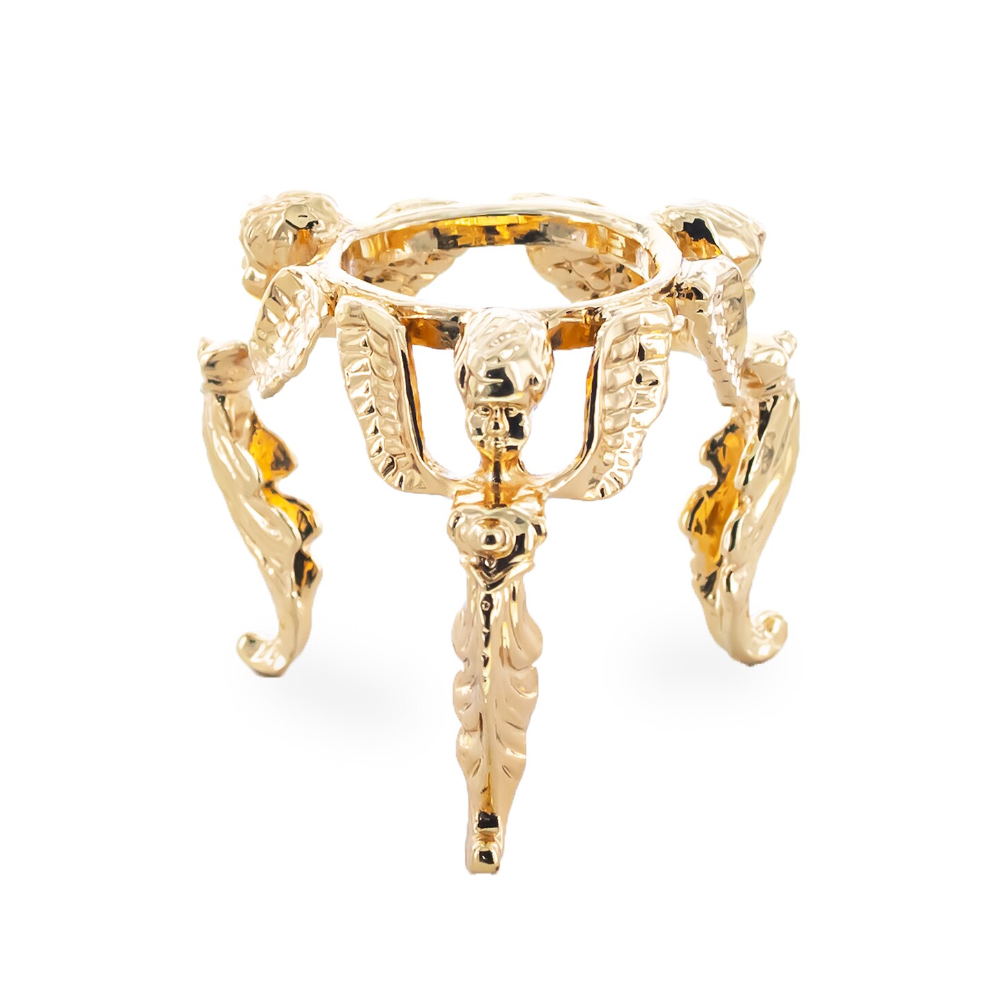Three Angels Gold Tone Metal Egg Sphere Stand Holder Display