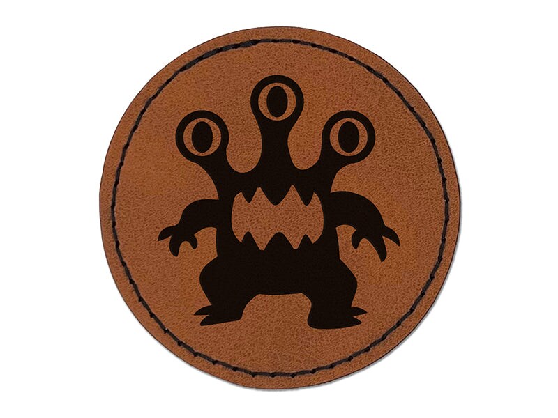 Three Eyed Alien Monster Round Iron-On Engraved Faux Leather Patch Applique - 2.5"