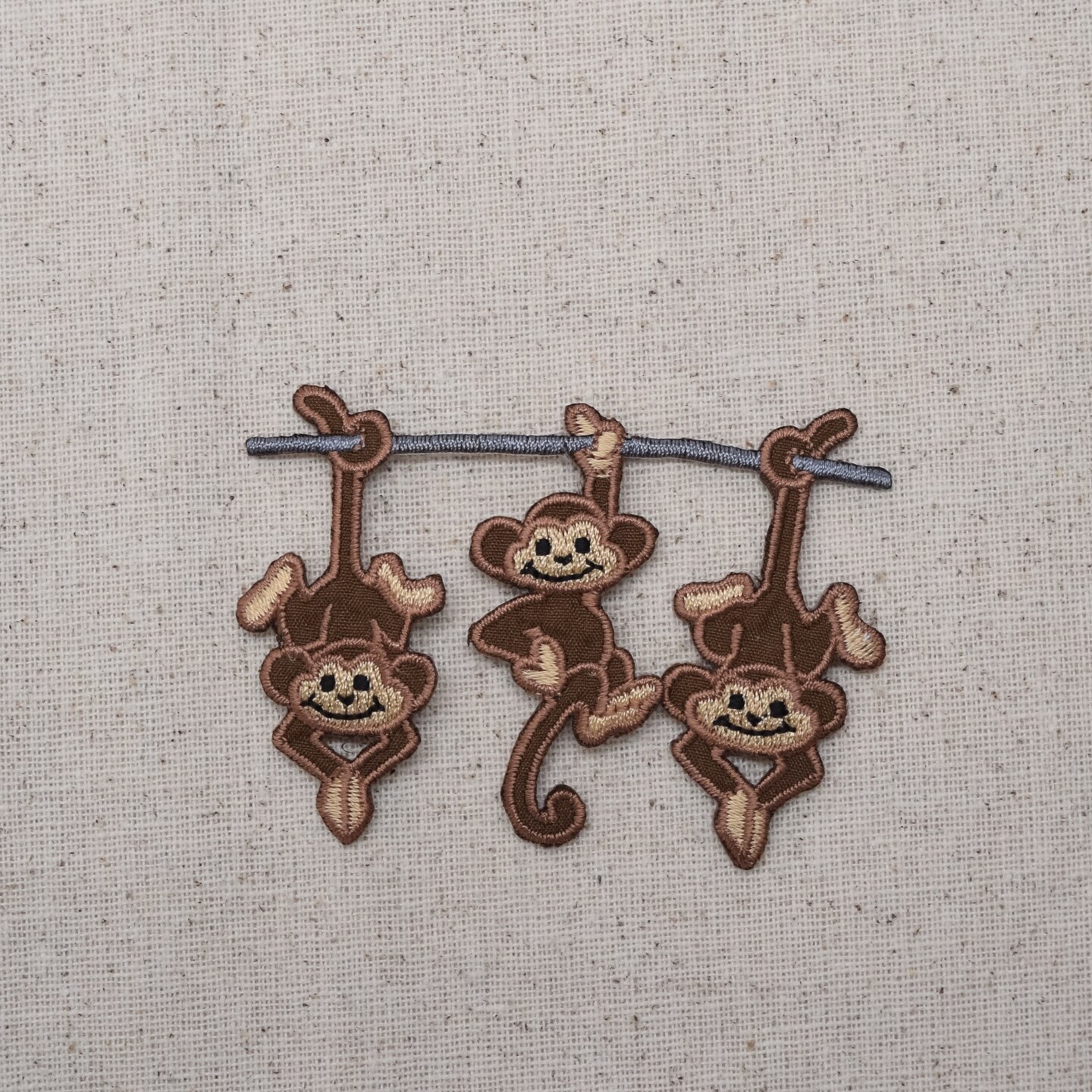 Three Monkeys Dark Brown, Zoo Animals, Embroidered, Iron on Patch