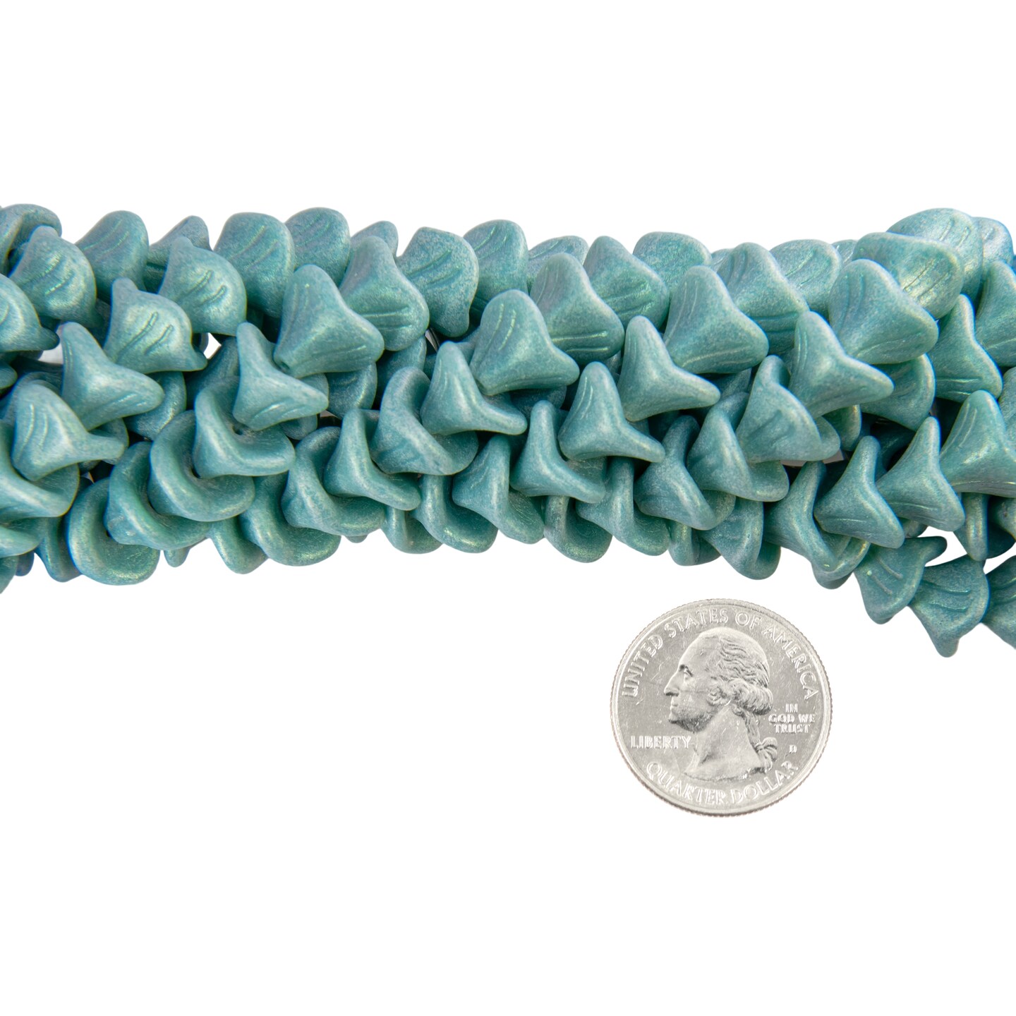 Three Petal Opaque Iridescent Mint Glass Flower Beads 12 x 10mm, Apx 25 beads GB-3PF05