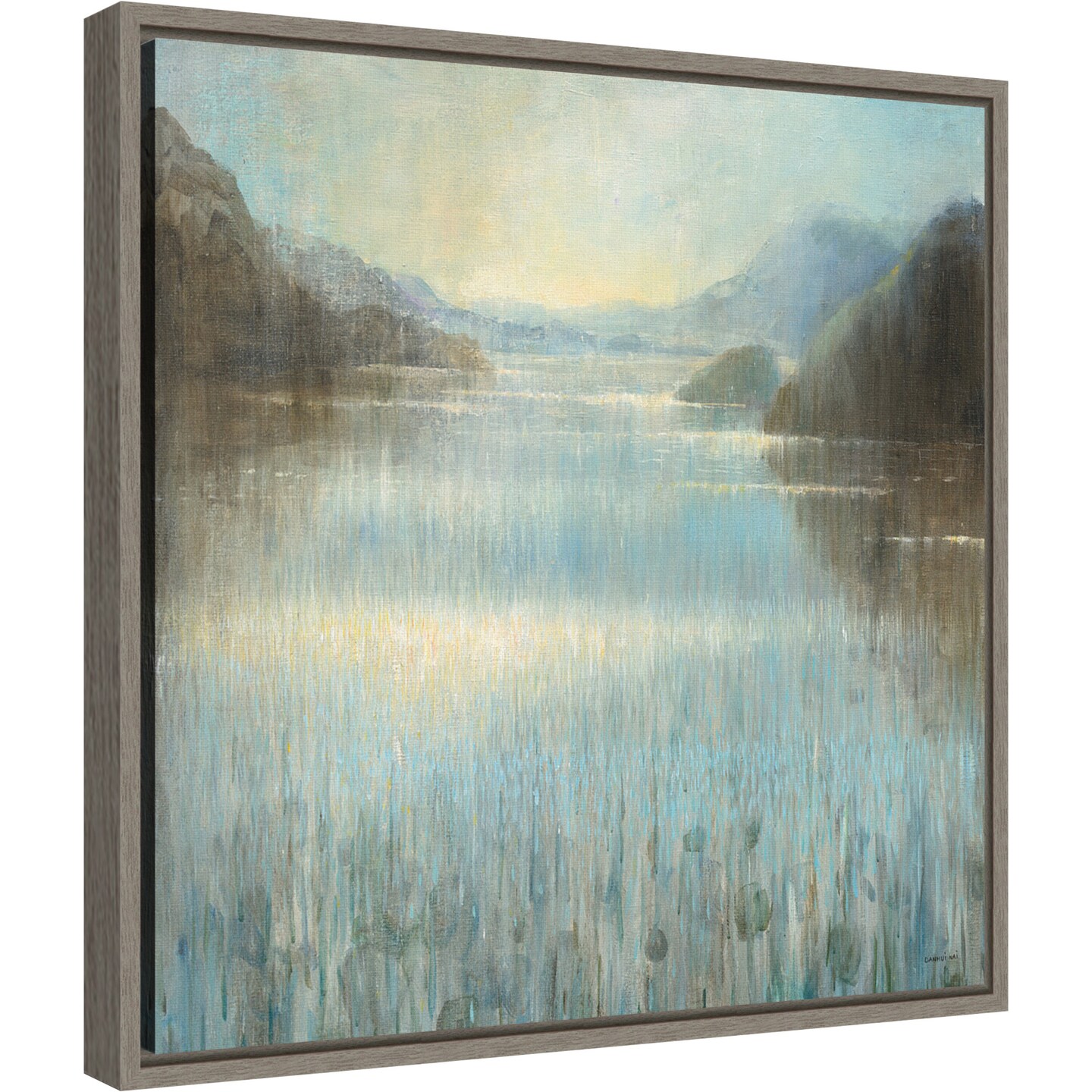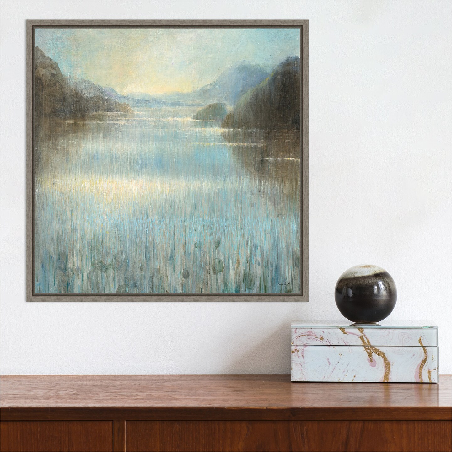 Through the Mist Square by Danhui Nai 16-in. W x 16-in. H. Canvas Wall Art Print Framed in Grey