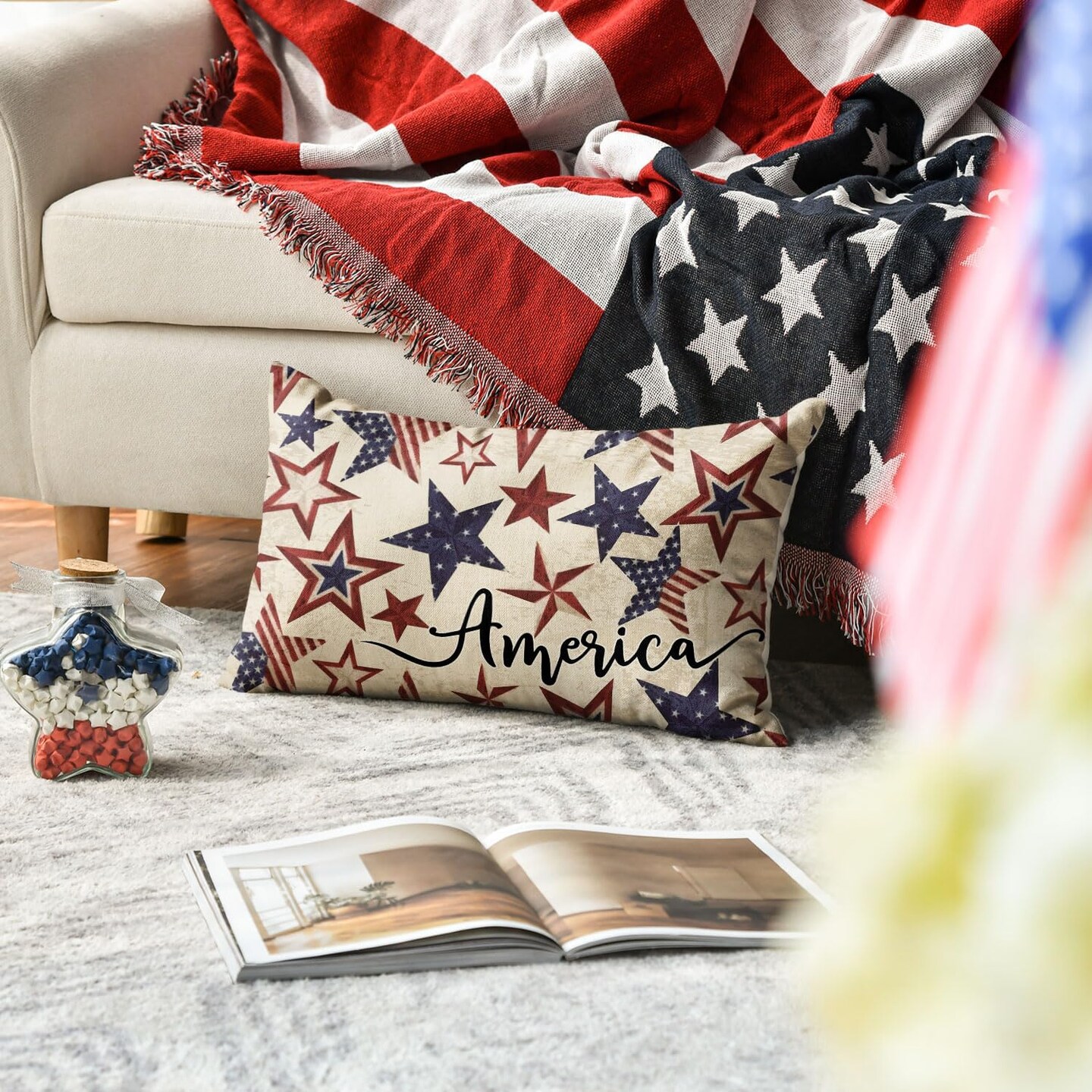 Throw Pillow Cover for 4th of July Decorations