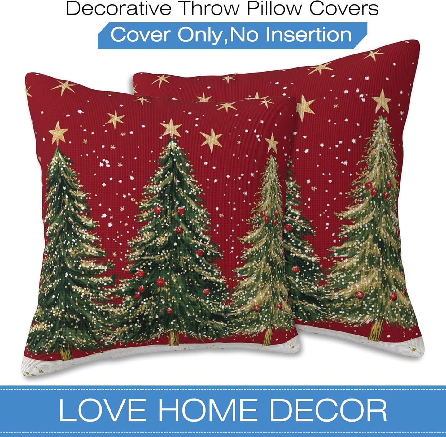 Throw Pillow Covers Christmas Tree Pillow Covers 18x18 Inch Set of 2 Christmas Throw Pillows Decorative Pillow Cases Cushion Covers for Bedroom Livingroom Sofa Farm House