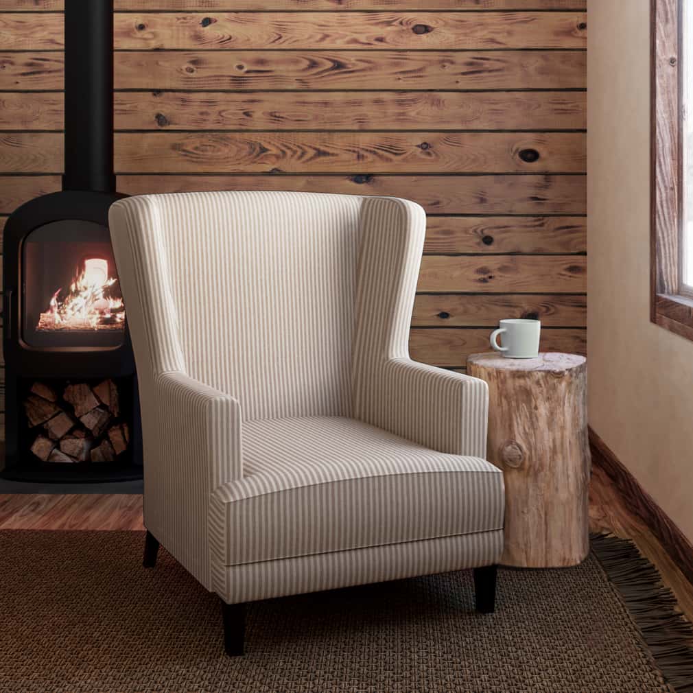 Ticking Cafe - Brown Small Scale,Stripe Upholstery Fabric 54 Inches"