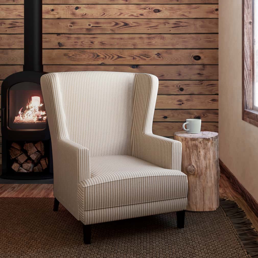 Ticking Sand - Beige & Taupe Small Scale,Stripe Upholstery Fabric 54 Inches"