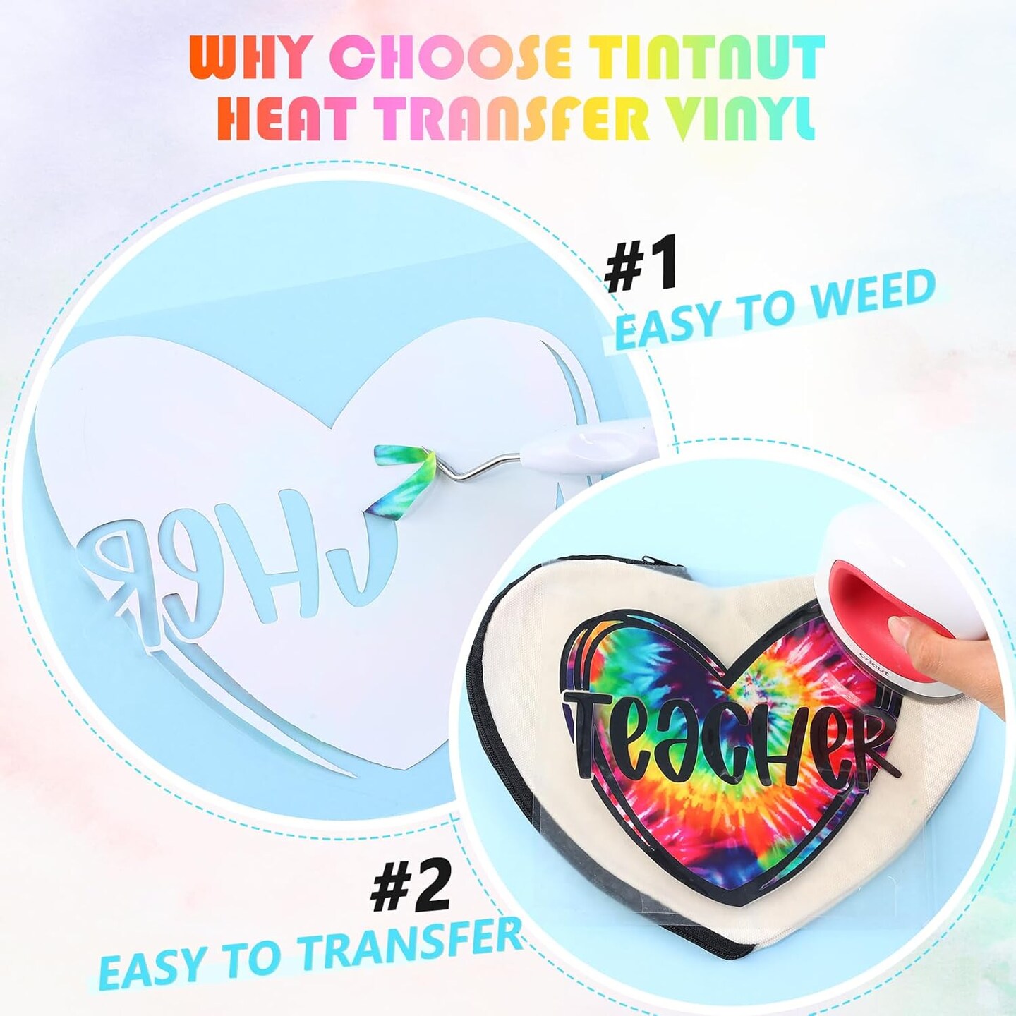 Tie Dye HTV Heat Transfer Vinyl - 12 Sheets Bundle, 10x12 Inch (Mutilcolor)