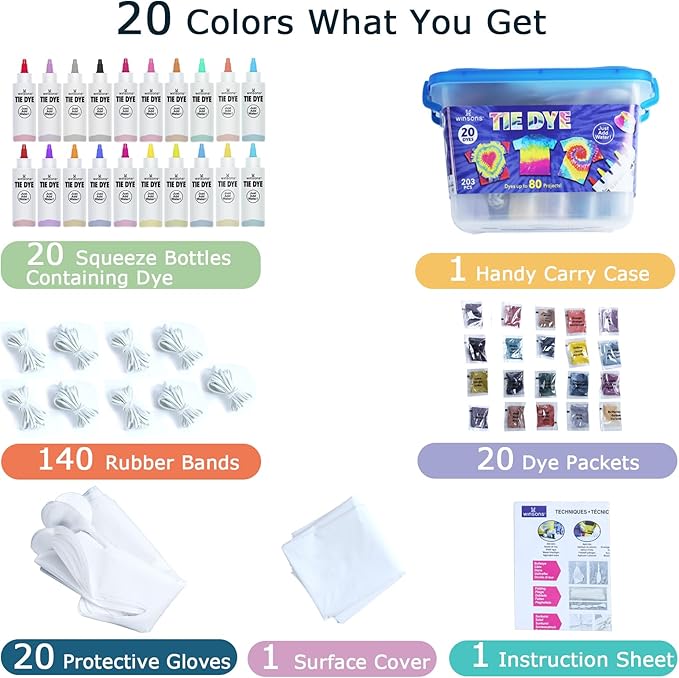 Tie Dye Kit 20 Colors Permanent Fabric Dye Art Set for Kids Adults for School, Homemade Party, Creative Groups Activities, DIY Gift