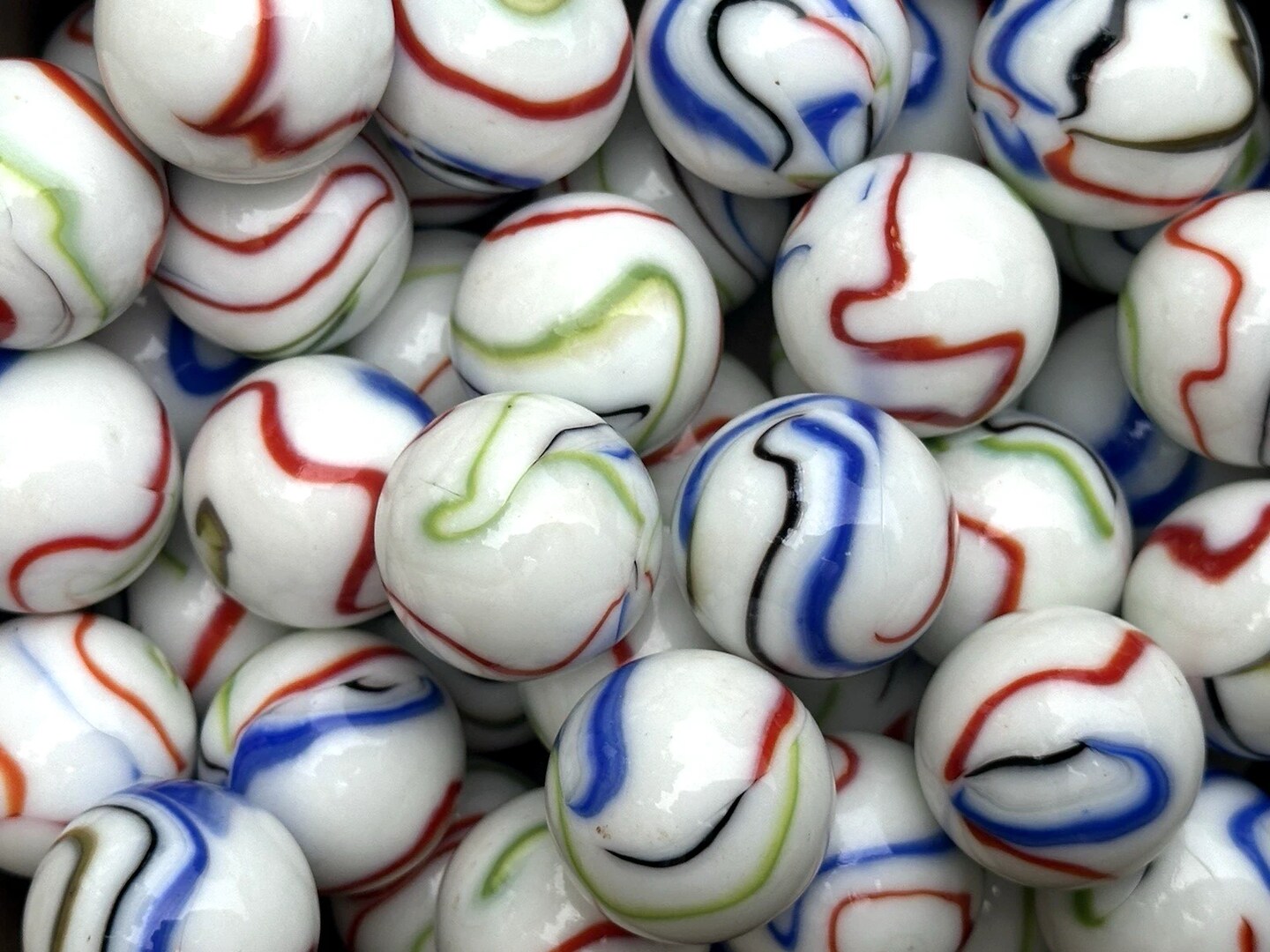 TIE-DYE White/Red/Blue/Green Glass Marbles 25mm (1 inch) SHOOTER Taw Lot