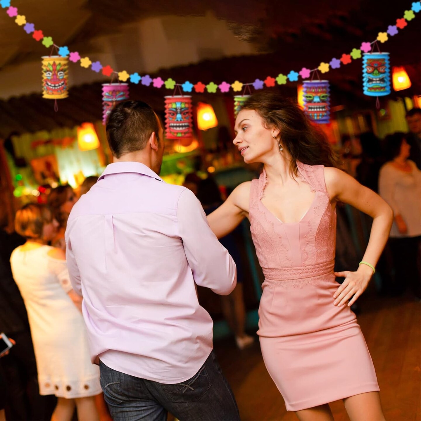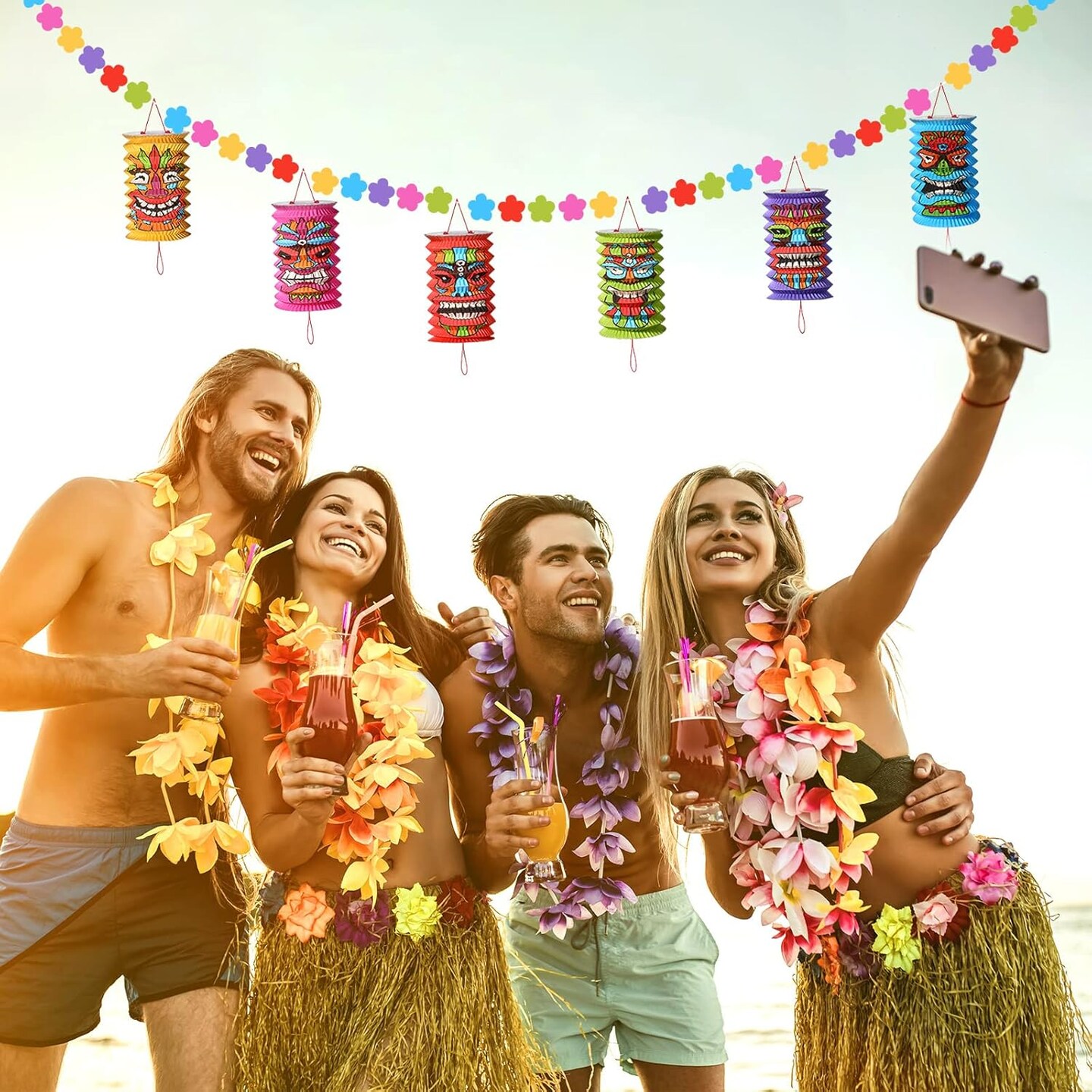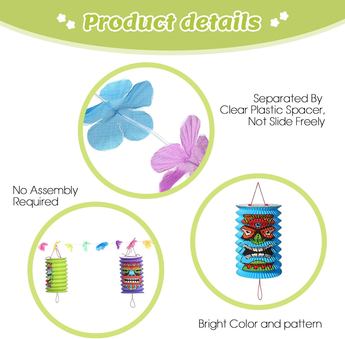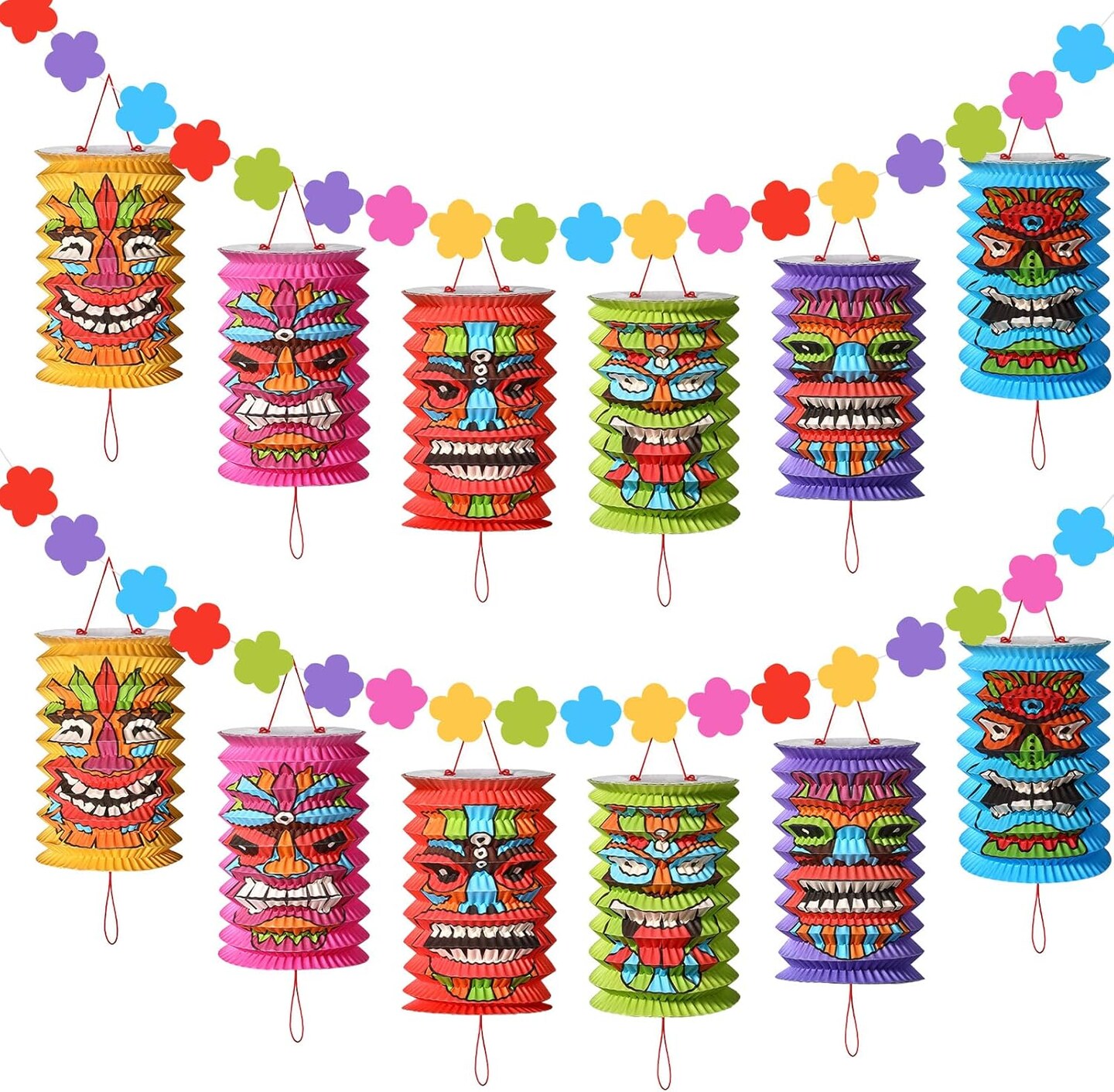 Tiki and Flowers Lanterns Banners Hawaiian Party Decorations Tiki Luau Tropical Decor Summer Garland Lanterns Aloha Hanging Decoration for Bars Festival Home Birthday Outdoor(2 Pcs)