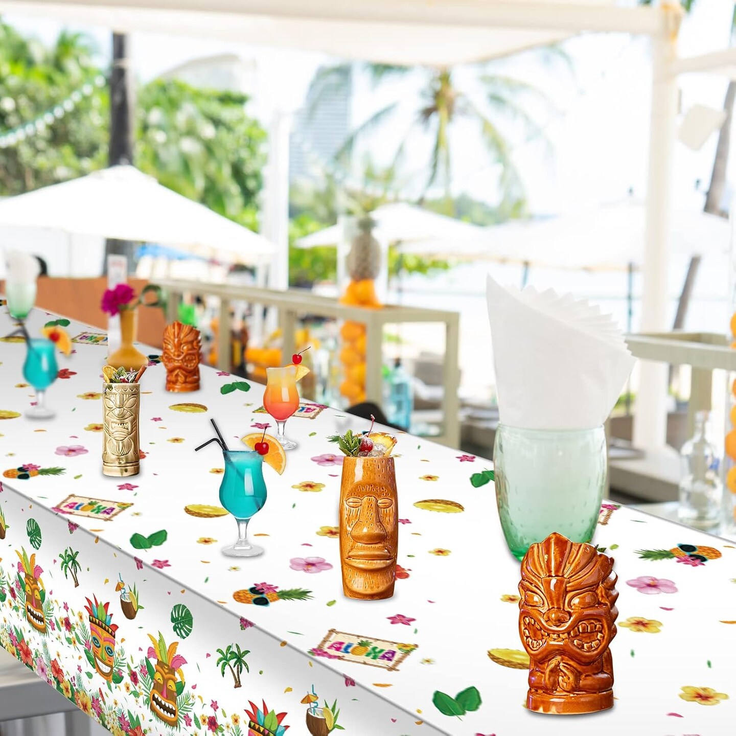 Tiki Party Tablecloths Decorations Hawaiian Luau Table Cloths Plastic Disposable Tropical Table Covers
