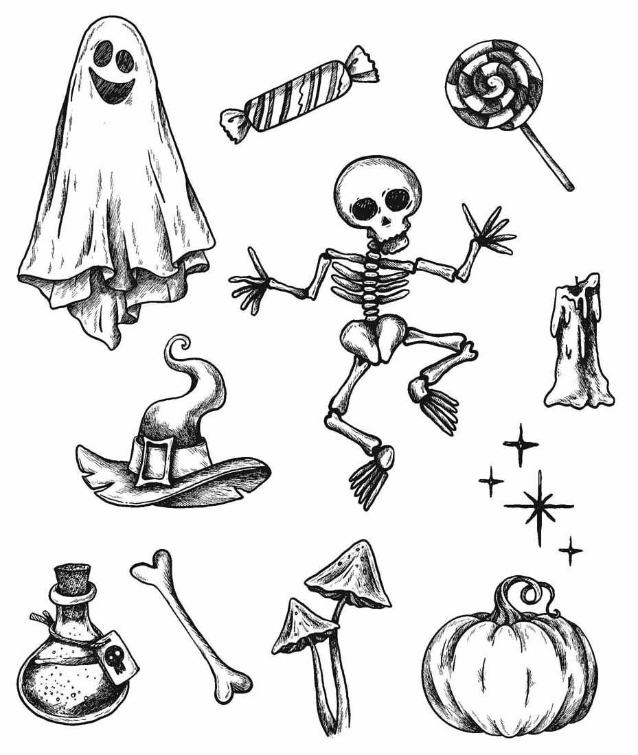 Tim Holtz Cling Stamps 7"X8.5"-Halloween Doodles