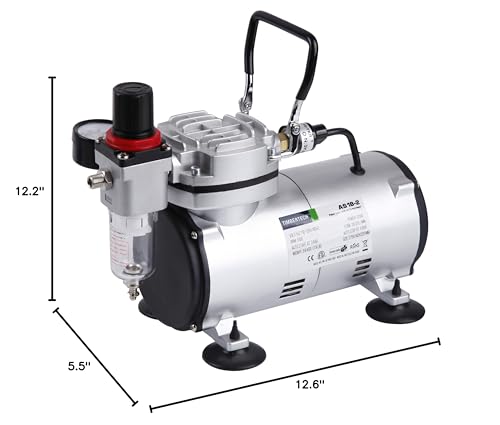 Timbertech Airbrush Kit With Compressor AS18-2K Basic Start Kit With Air Hose, Cleaning Brushes, and Test Paints for Hobby, Body Tattoo, Model painting, Automotive Graphic, Make-up