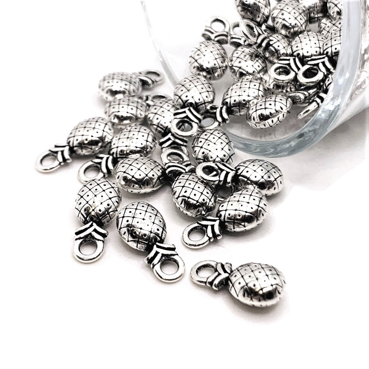 Tiny Antiqued Silver Pineapple Charms, 14x7mm