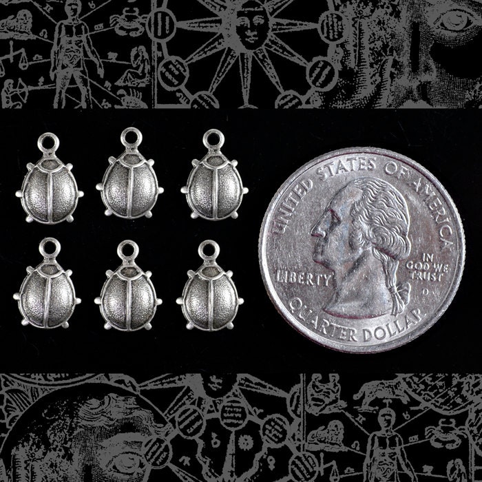 Tiny Antiqued Silver Plated Brass Ladybug Charms - Set of Six - S-C04
