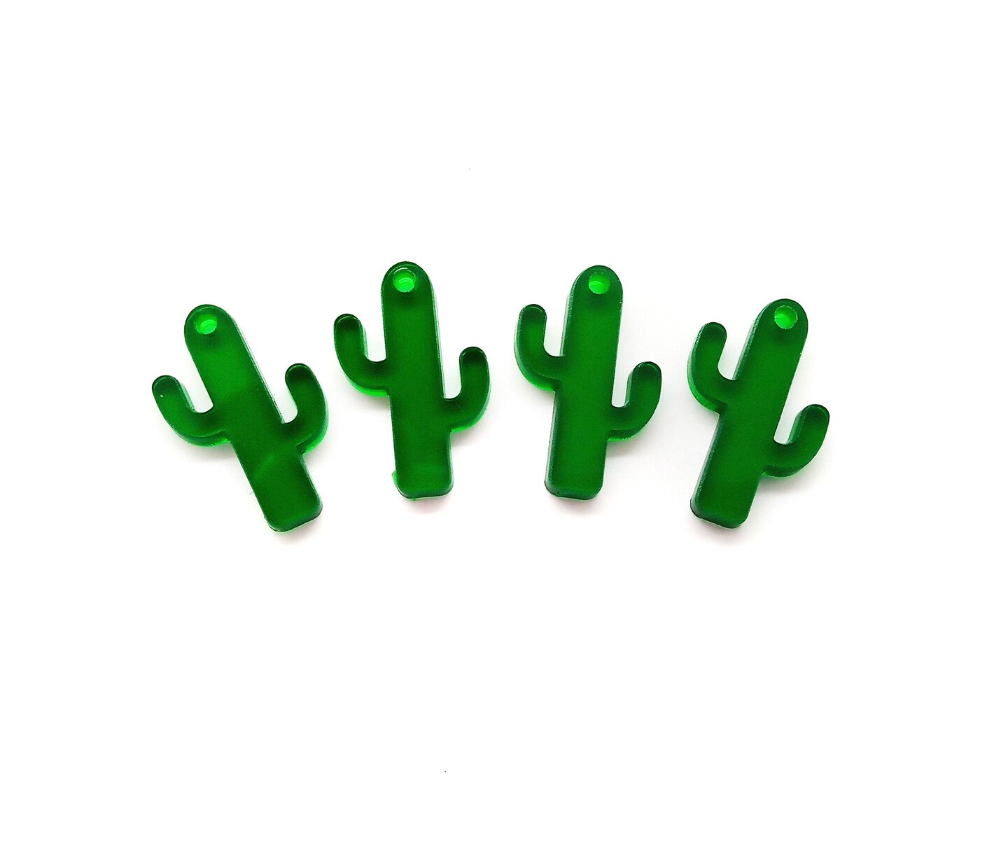 Tiny Cactus Charms, 4 pieces, Cute Laser-Cut Acrylic Plants, Adorabilities