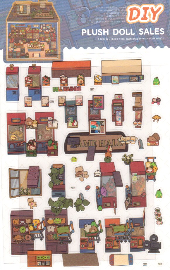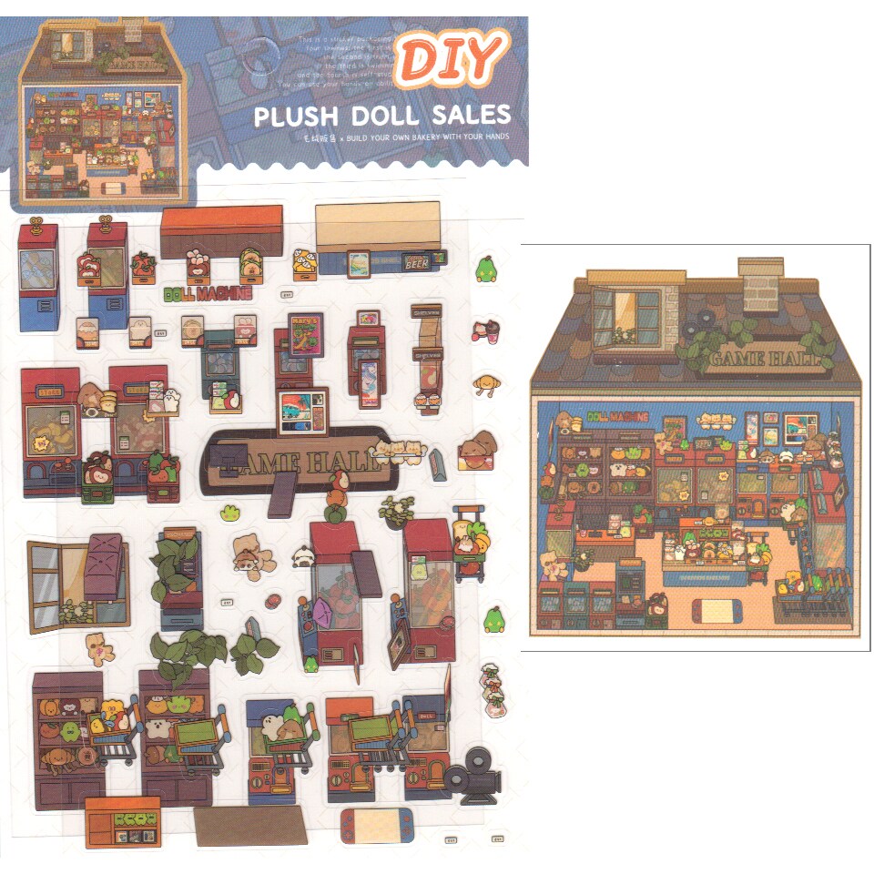 Tiny Isometric Sticker Scene, Stuffed Animal Shop, Adorabilities