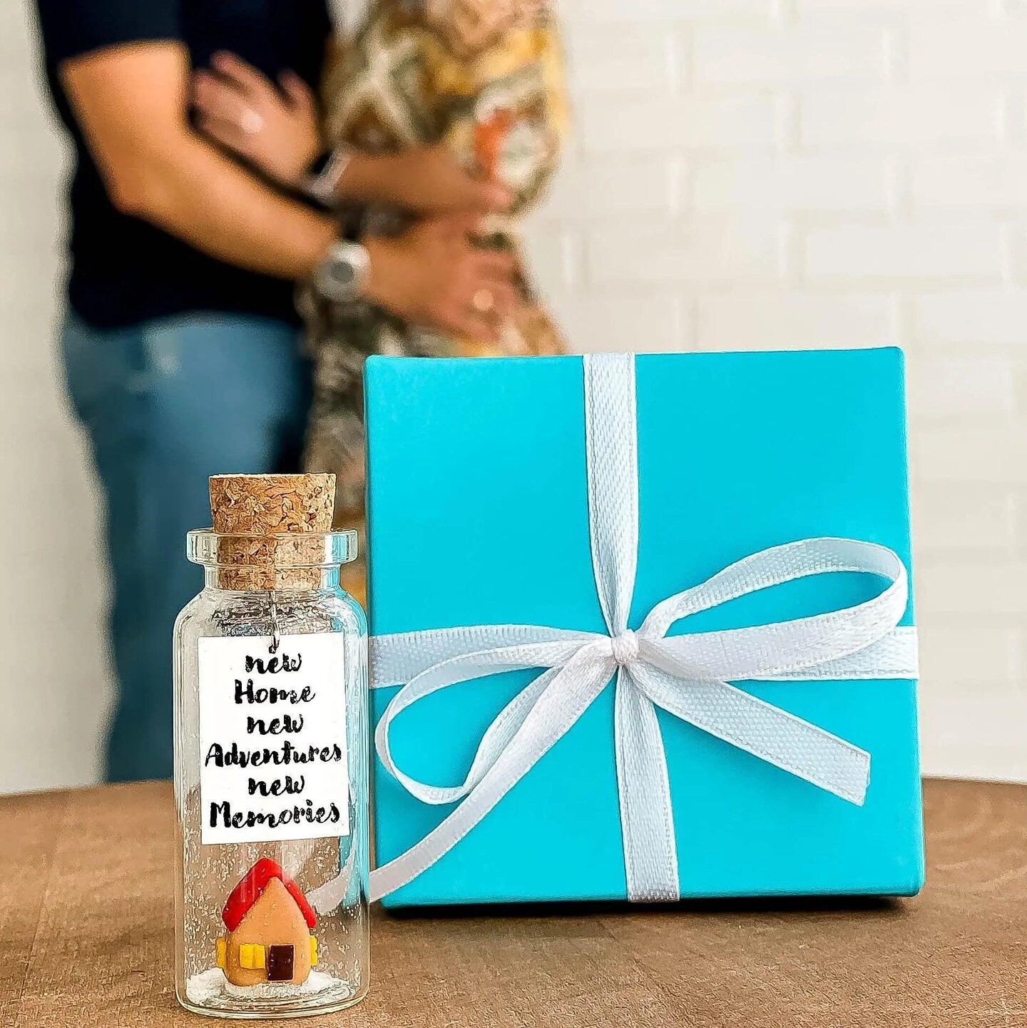 Tiny Magical Message in a Bottle Gift Idea Classy Inspirational Gifts for Him and Her Unique Presents for Women and Men (Colorful House New Home New Adventures New Memories in Teal Gift Box)