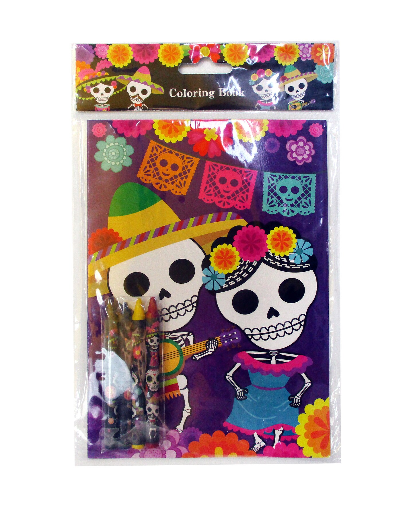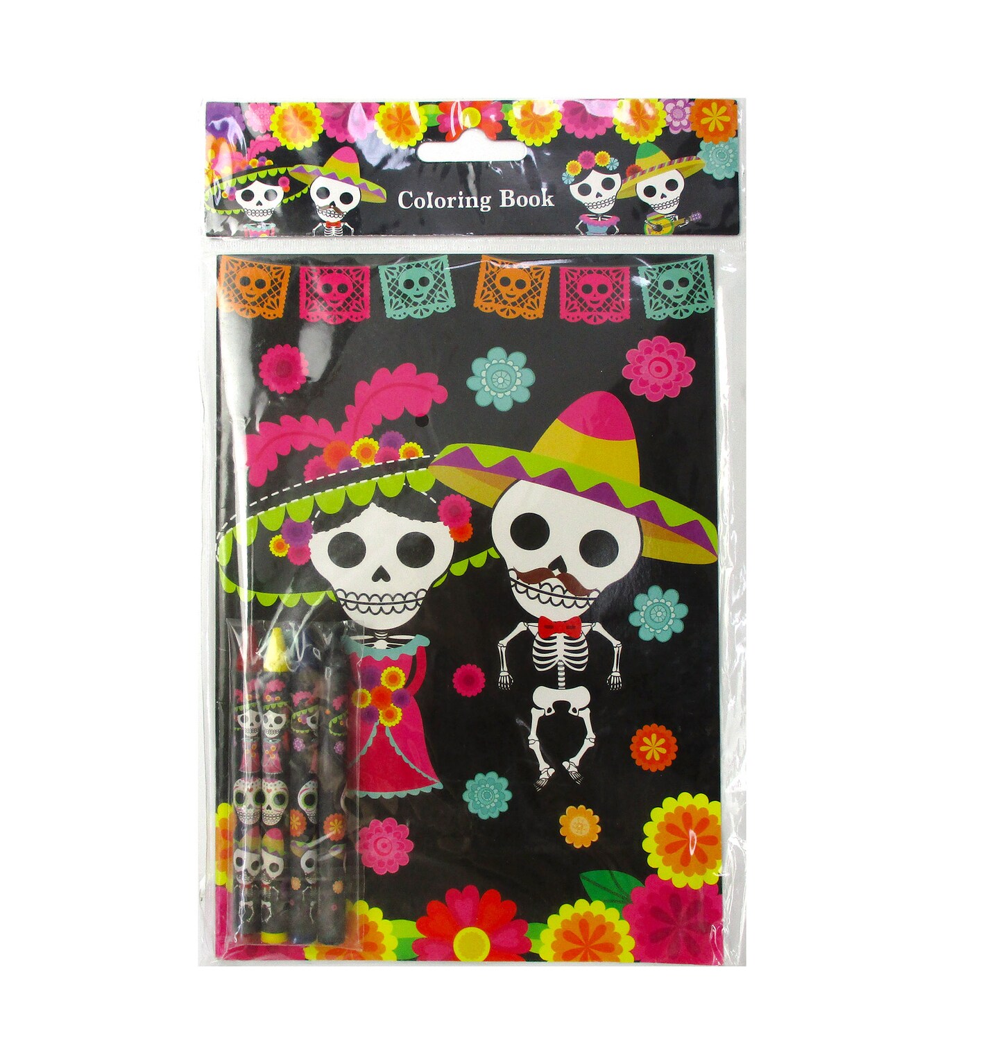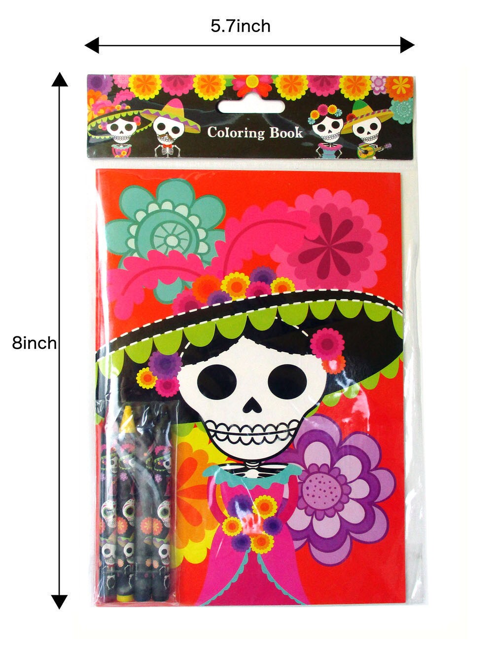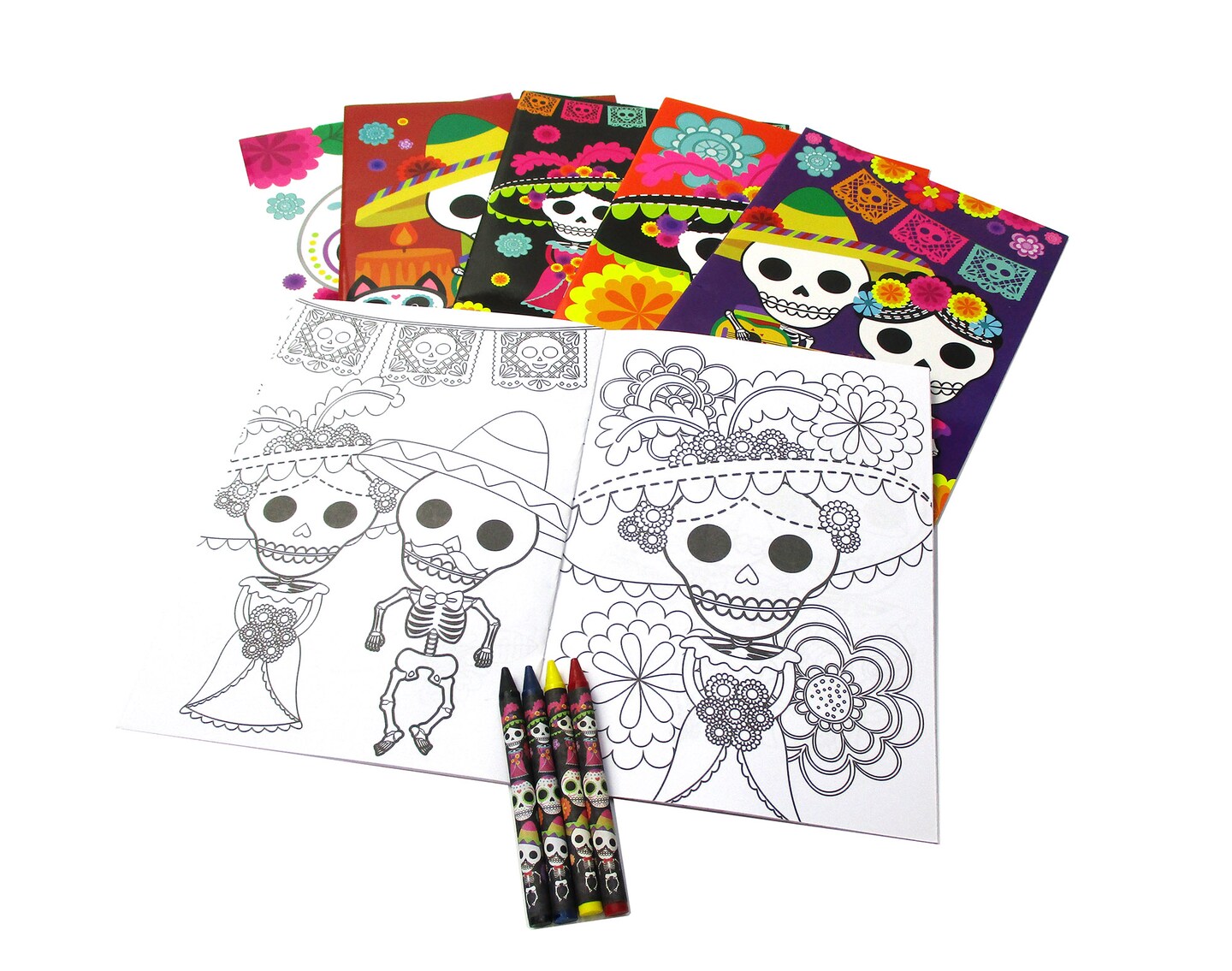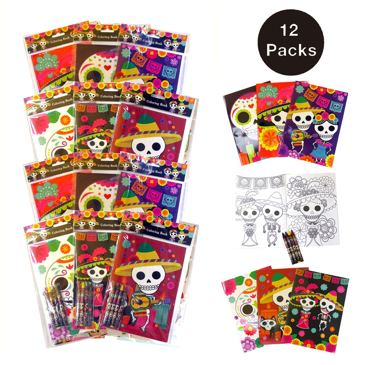 Tiny Mills Day of the Day Coloring Books for Kids with 12 Coloring Books and 48 Crayons, Halloween Party Favors, Dia de Los Muertos Sugar Skulls