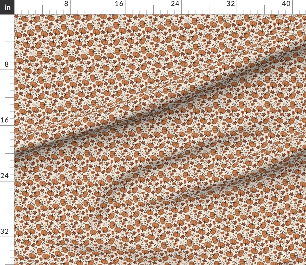 Tiny Pumpkins Autumn Leaves Fall Acorn Pumpkins Fall Floral Small Scale Fall Foliage Fall Leaves Harvest Pumpkins Cozy Fall Rustic Pumpkin Custom Printed Fabric by Spoonflower Various Fabrics by the Yard or Fat Quarter