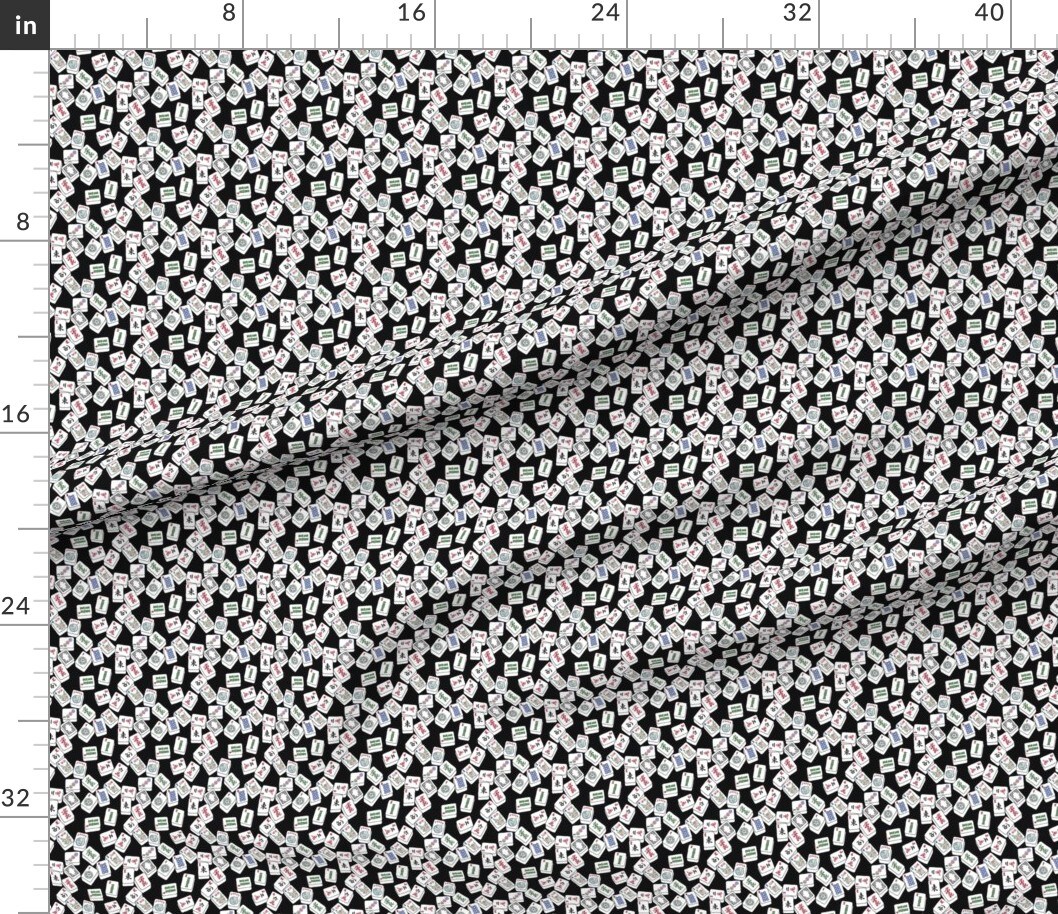 Tiny Scale Mahjong Black And White Tabletop Game Traditional Custom Printed Fabric by Spoonflower Various Fabrics by the Yard or Fat Quarter