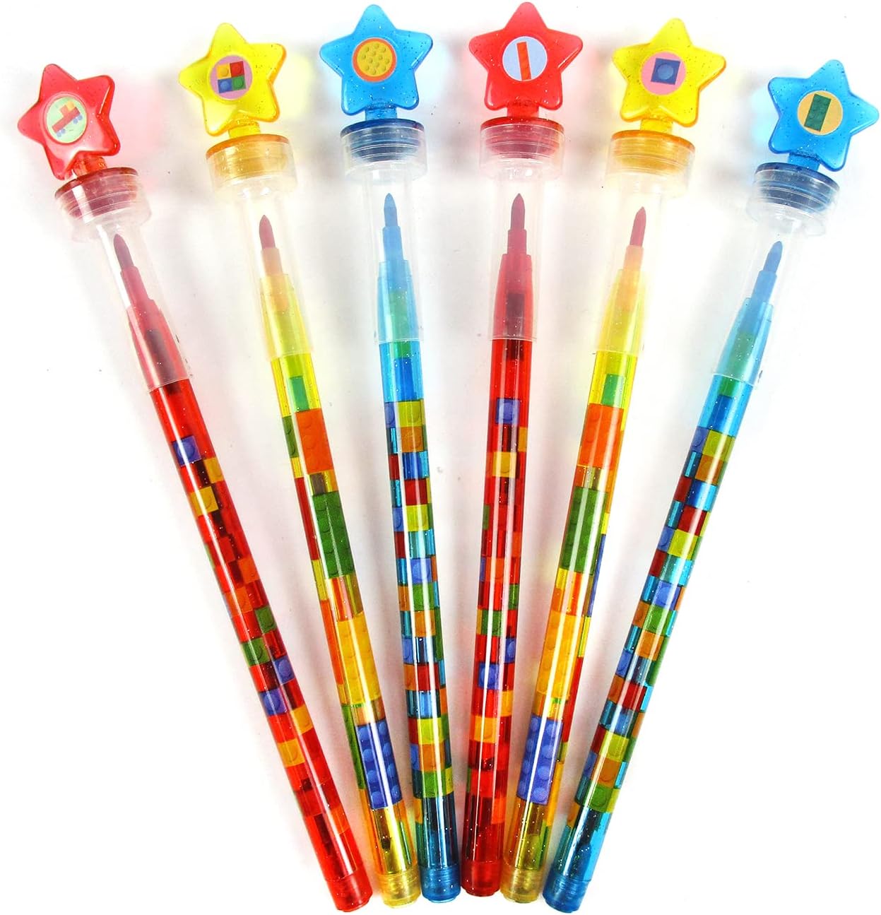 TINYMILLS 24 Pcs Color Blocks Bricks 2 in 1 Stacking Crayons with Stamp Topper