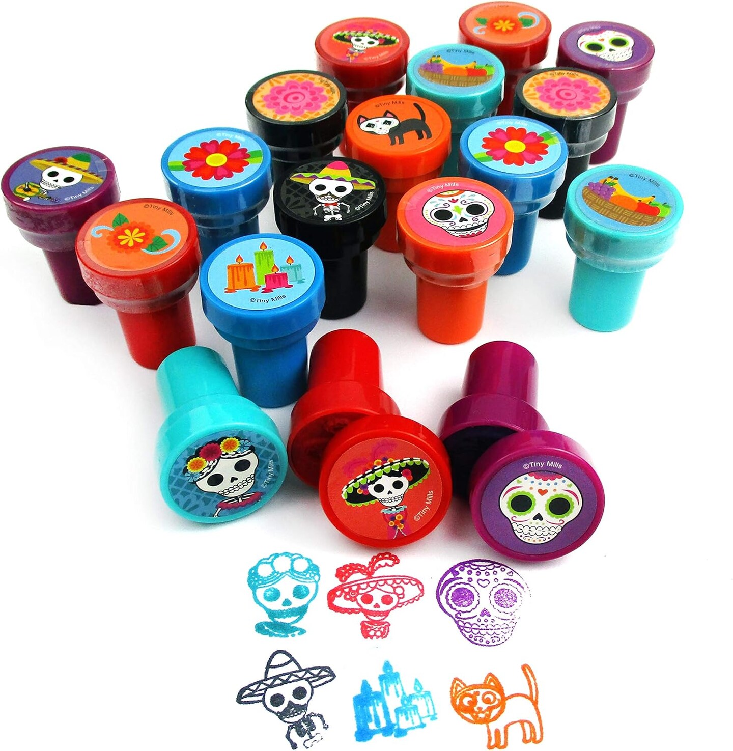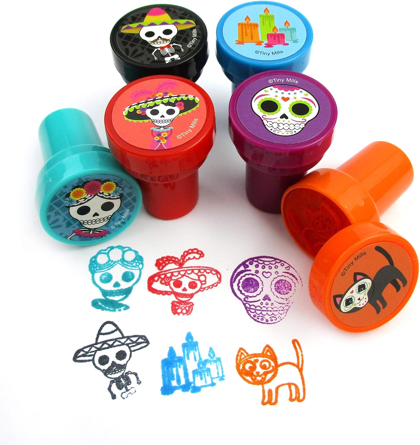 TINYMILLS 24 Pcs Day of The Dead Stamps for Kids Halloween Stamps Game Prizes Goodie Bag Filler Non Candy Treat