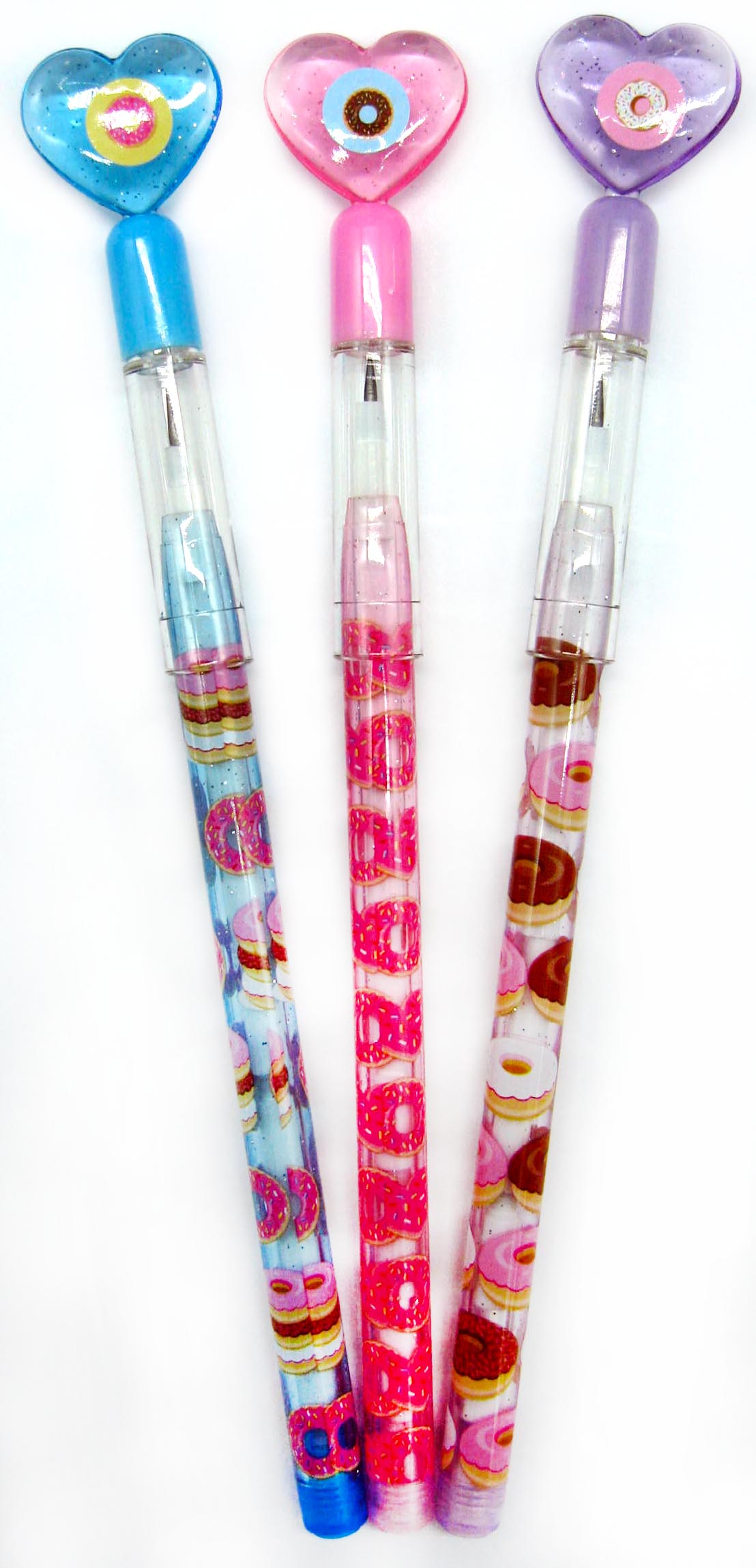 TINYMILLS 24 Pcs Donuts Multi Point Stackable Push Pencil Assortment with Eraser for Donut Party Favor Prize