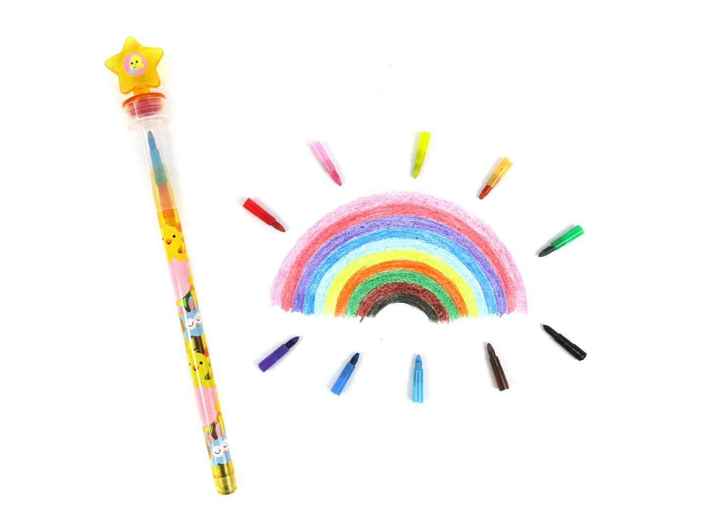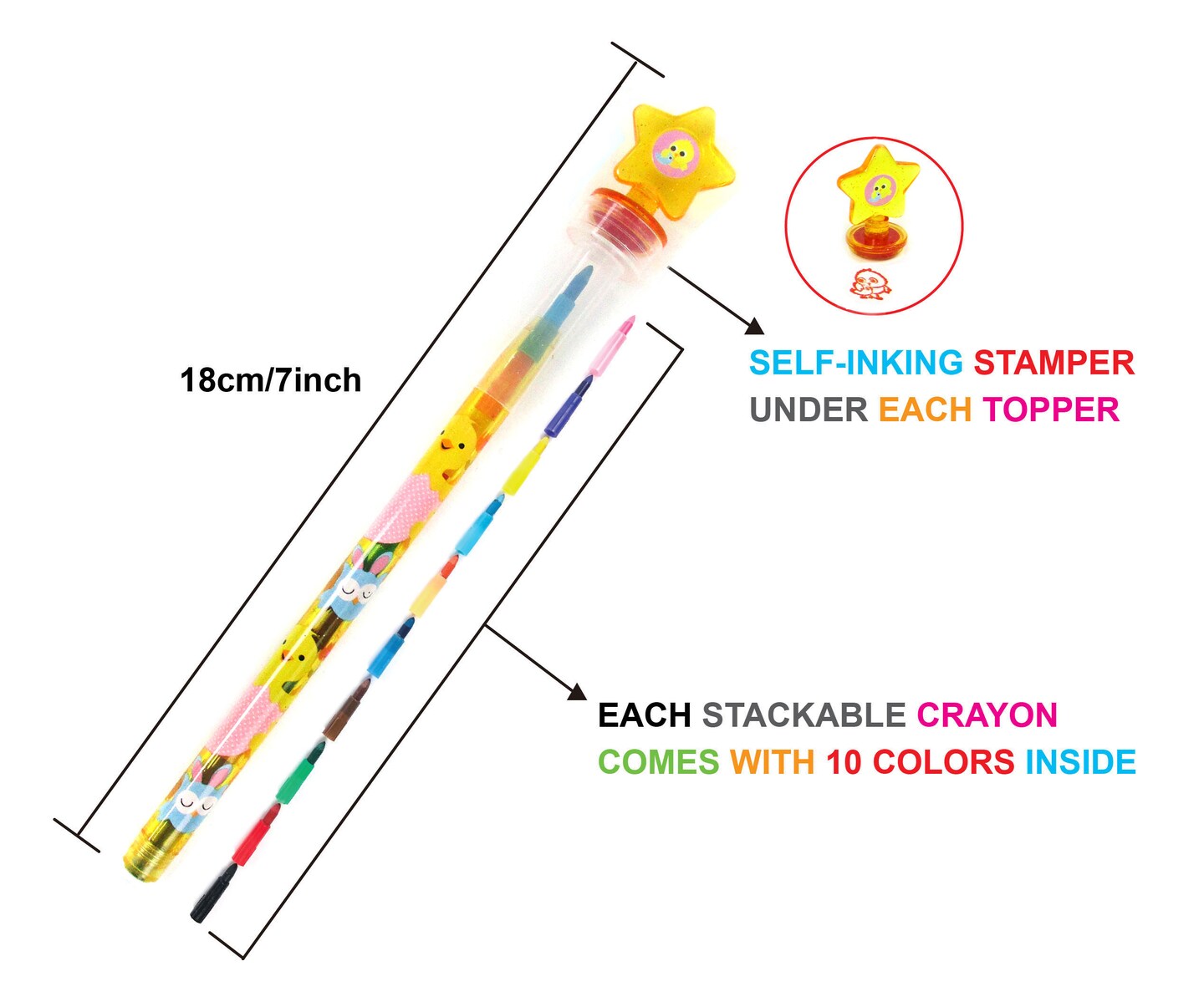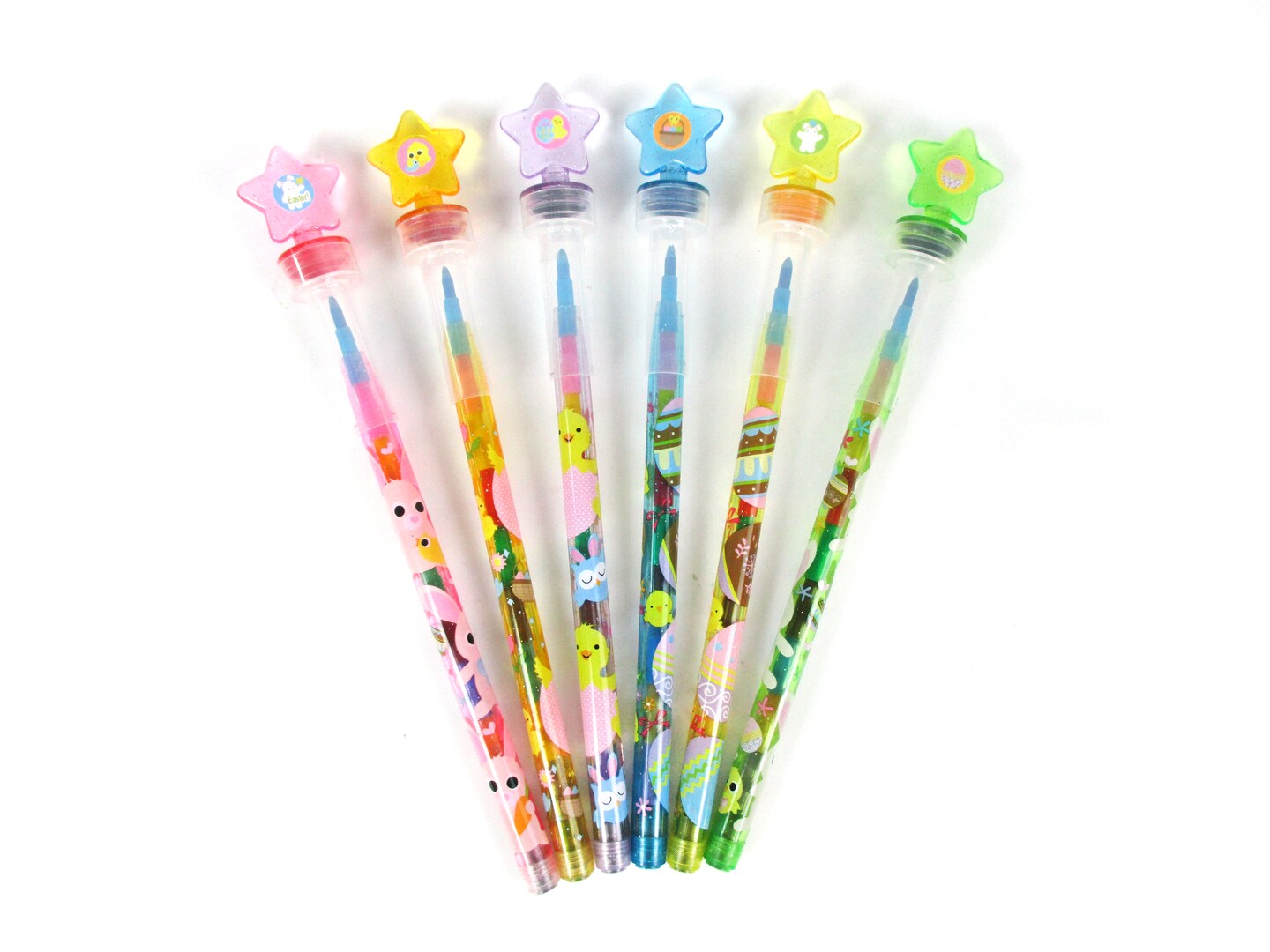 TINYMILLS 24 Pcs Easter 2 in 1 Stackable Stacking Crayon with Extra Stamper Topper, Easter Basket Filler