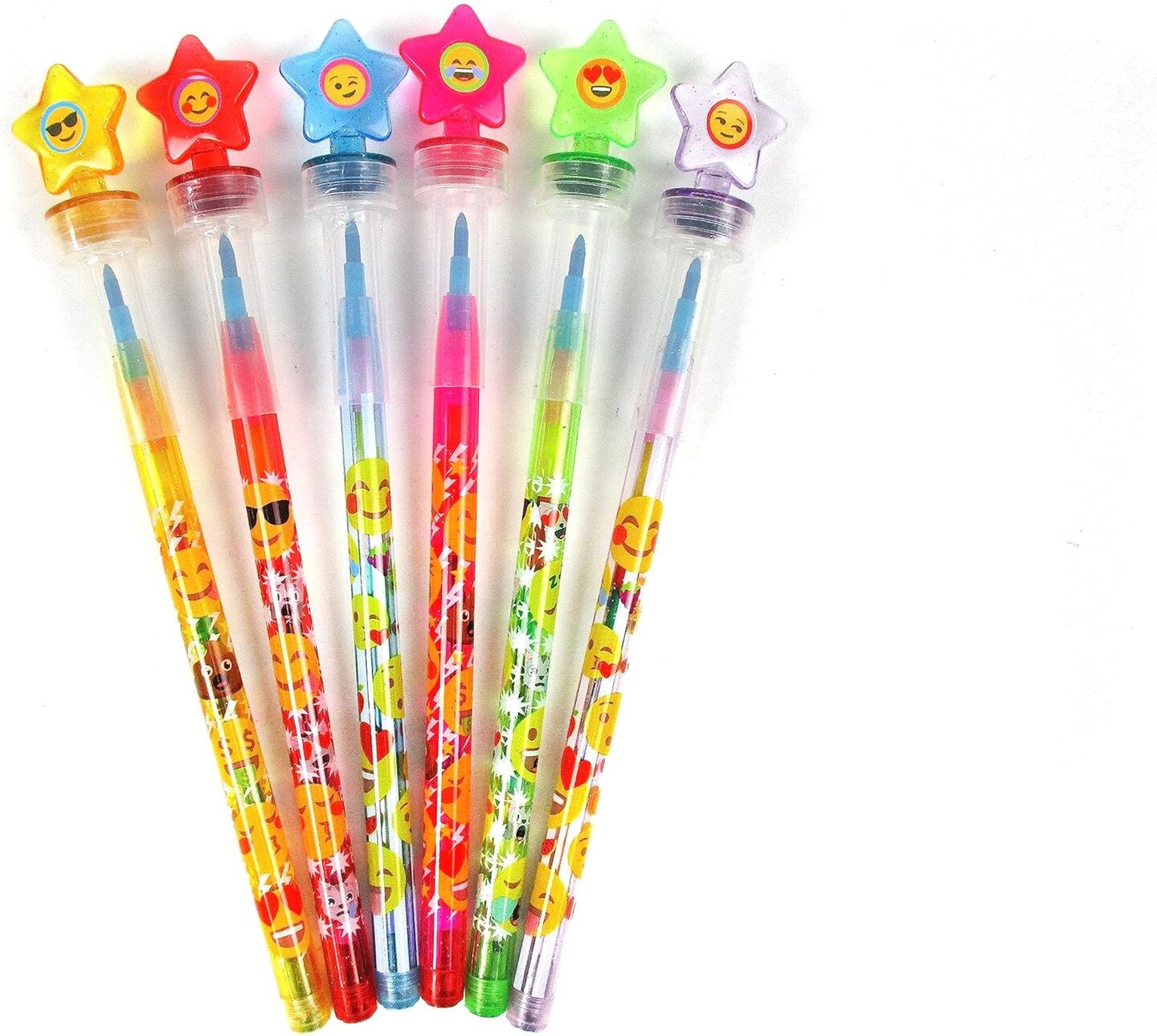 TINYMILLS 24 Pcs Emoji 2 in 1 Stacking Crayons with Stamp Topper