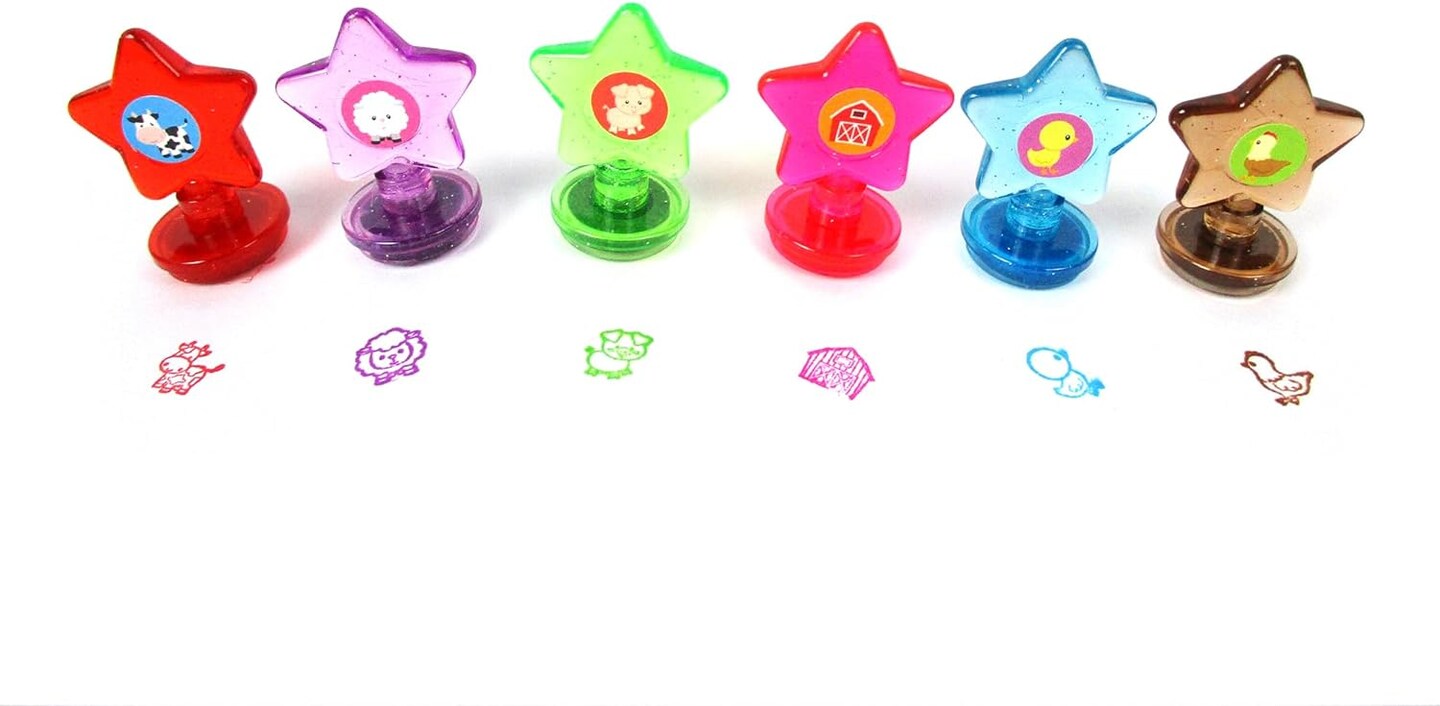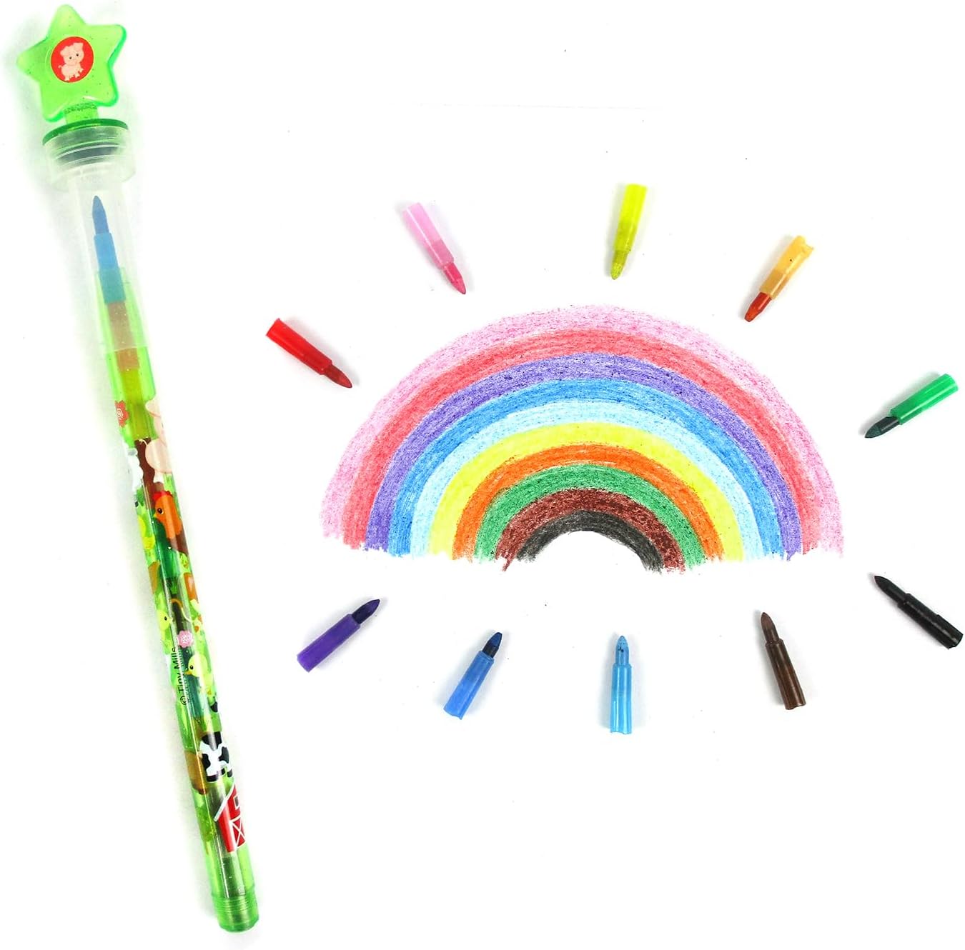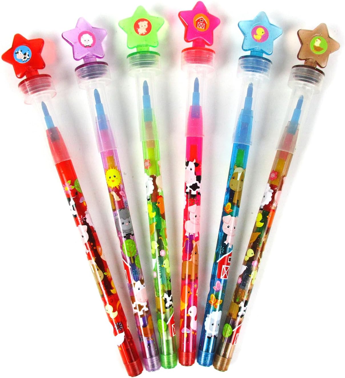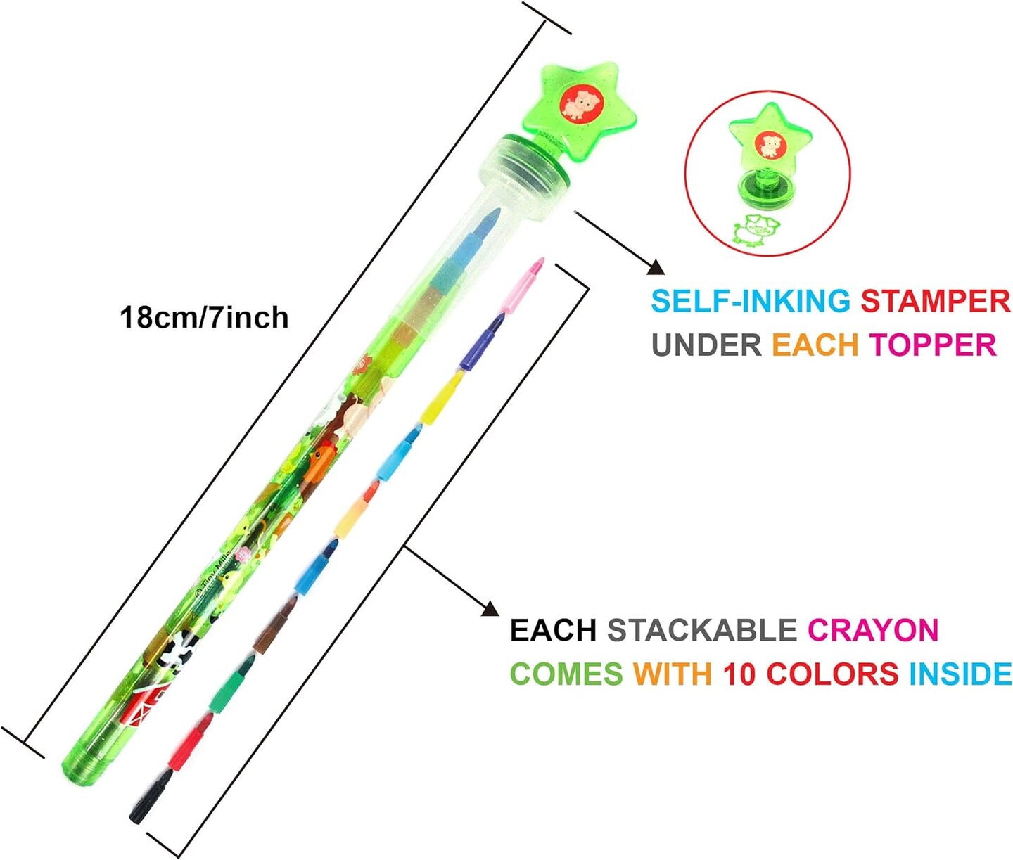 TINYMILLS 24 Pcs Farm Animals 2 in 1 Stackable Stacking Crayon with Extra Stamper Topper,