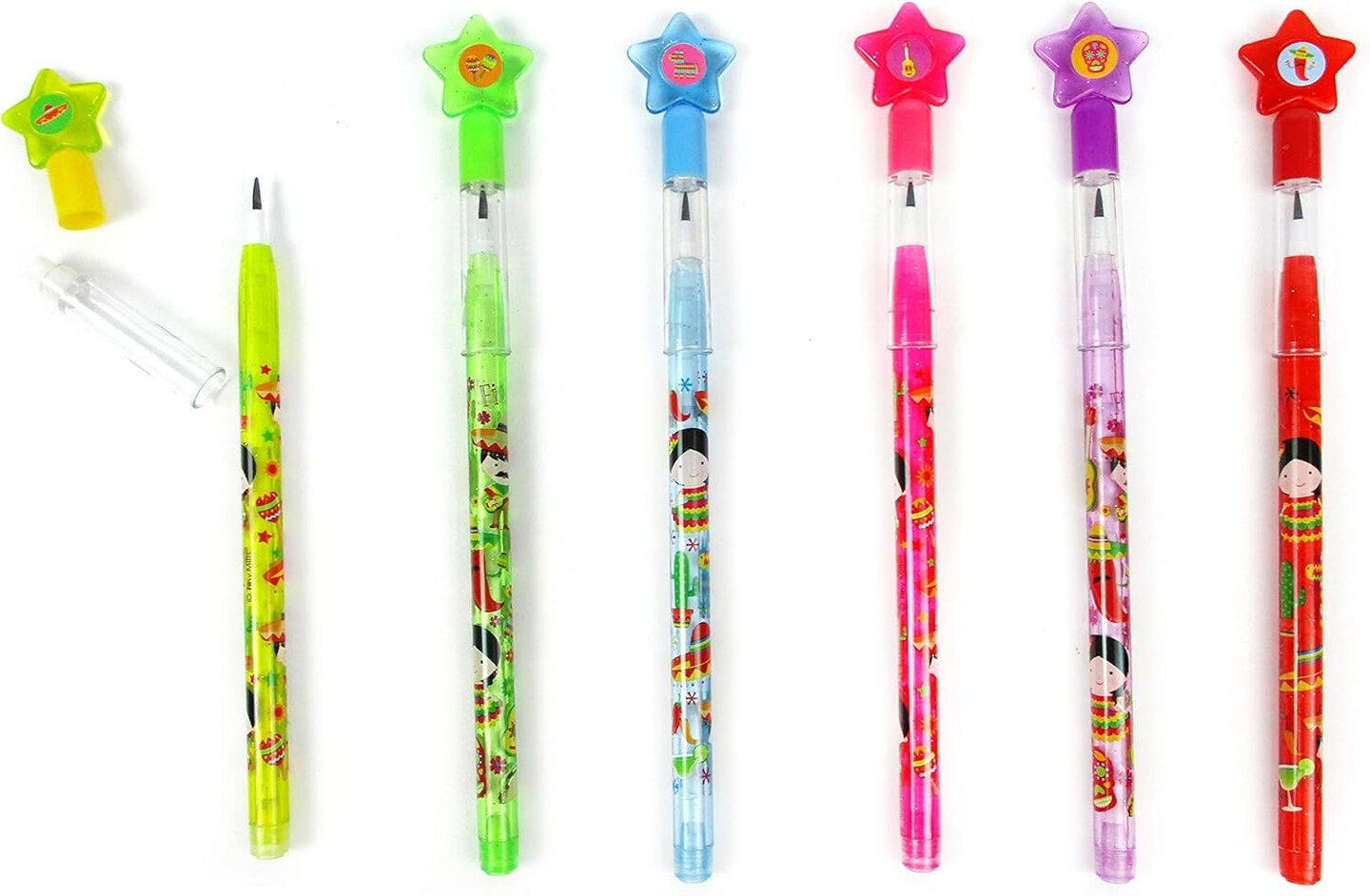 TINYMILLS 24 Pcs Mexican Fiesta Tacos Multi Point Pencils Stackable Stacking Pencil with Eraser for Pinata Filler Goodie Bag Stuffers Classroom Rewards Cinco de Mayo Party Favors