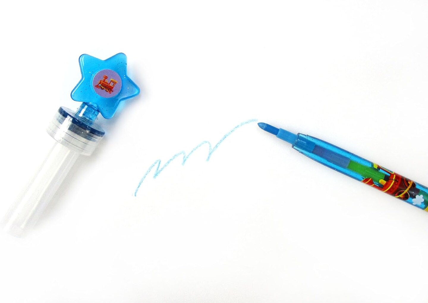TINYMILLS 24 Pcs Train 2 in 1 Stacking Crayons with Stamp Topper
