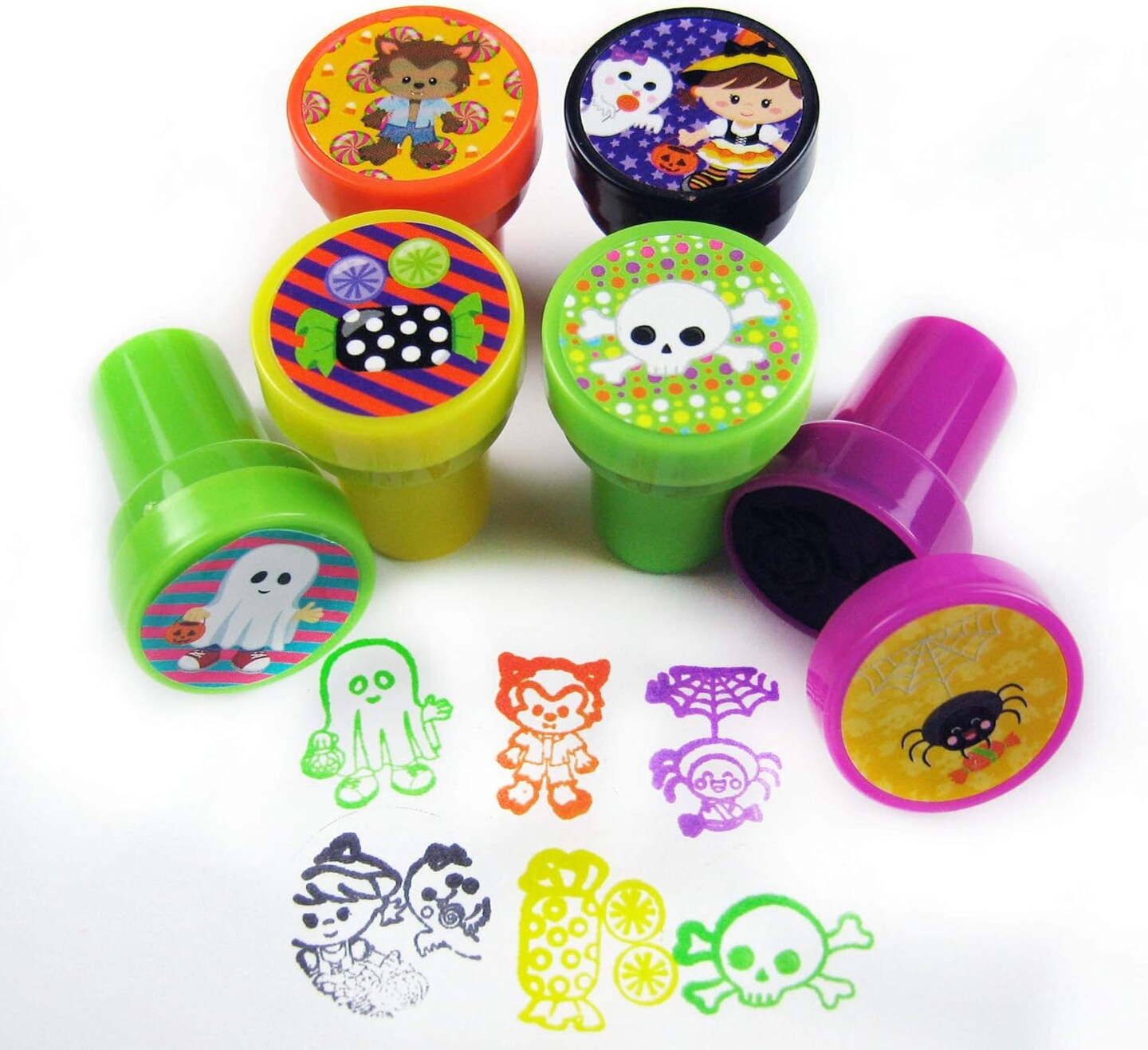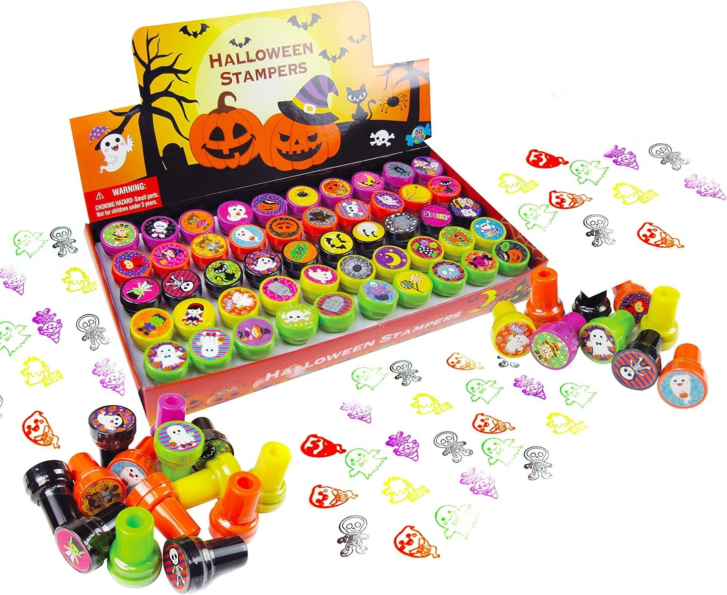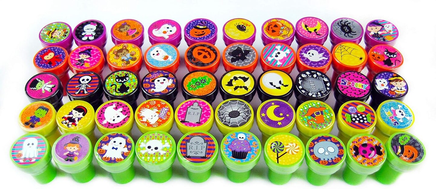 TINYMILLS 50 Pcs Halloween Stamps for Kids with 50 Different Designs Trick or Treat Stampers Bulk Halloween Party Favors for Kids, Game Prizes, Halloween Stampers for Kids, Non Candy Treats