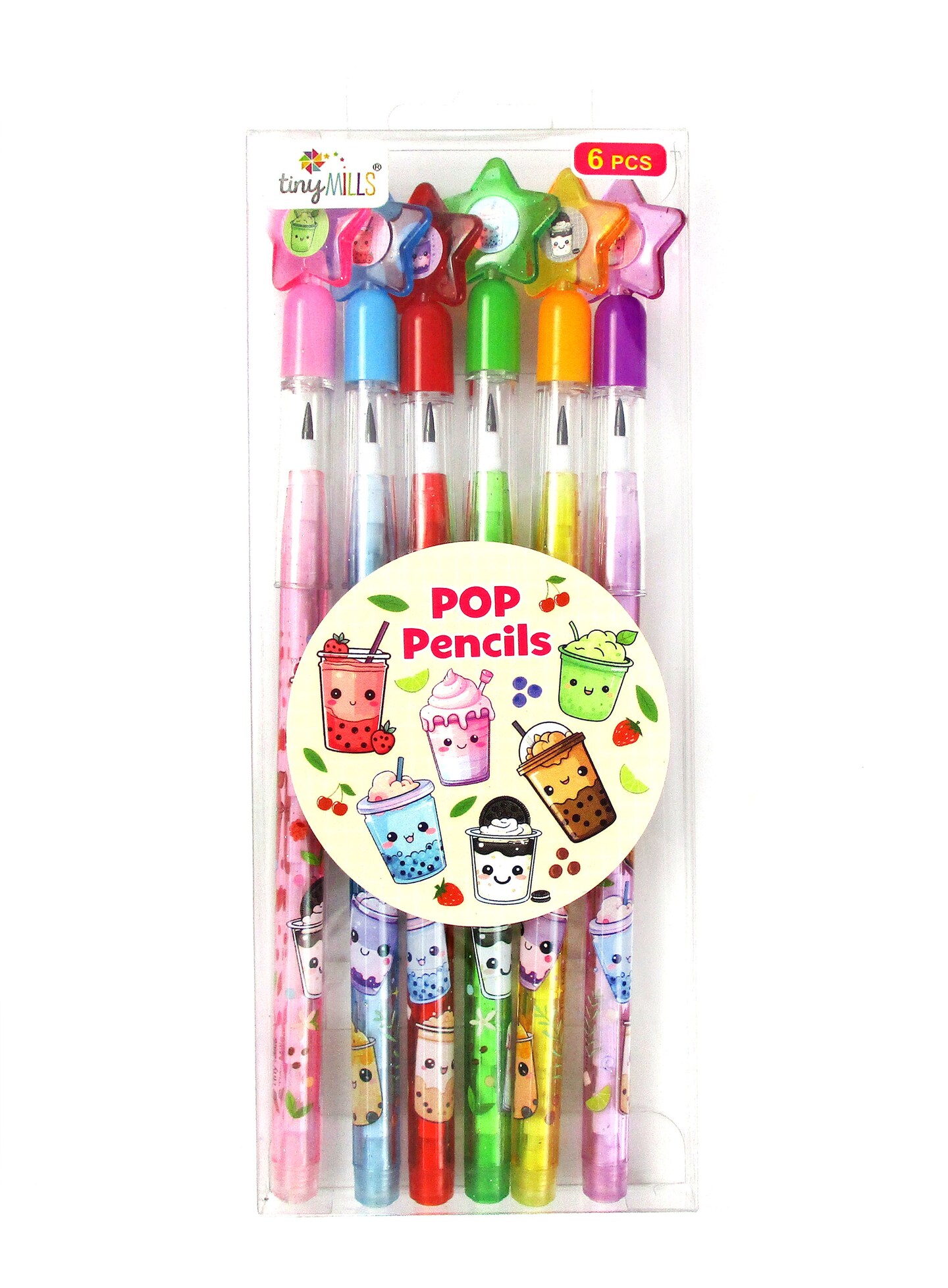 TINYMILLS 6 Pcs Boba Stackable Pop Pencils – Cute Bubble Tea Multi-Point Pencils, Boba Party Favors, Classroom Rewards, Goody Bag Stuffers, Kawaii School Supplies