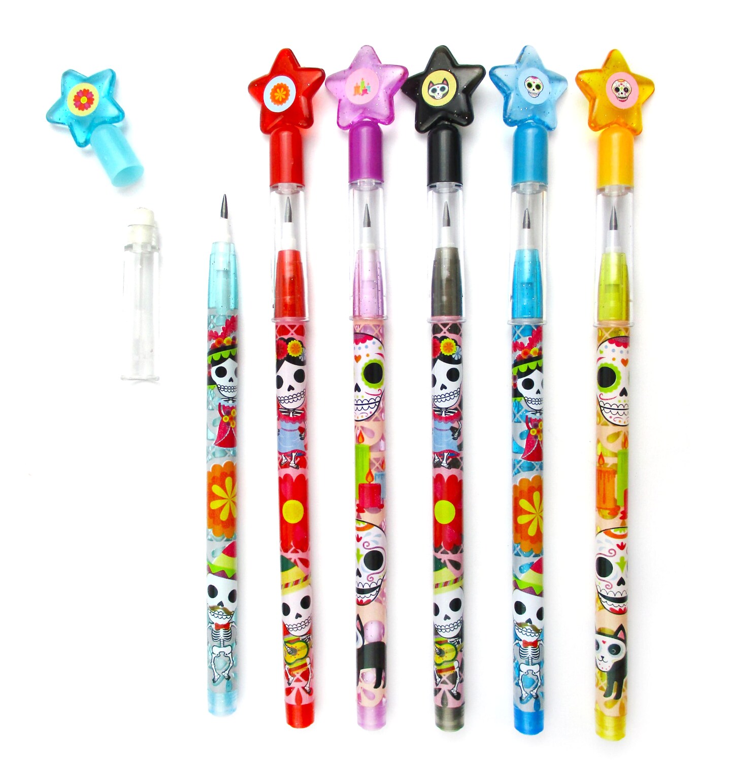 TINYMILLS 6 Pcs Day of the Dead Dia de los Muertos Multi-Point Pencils