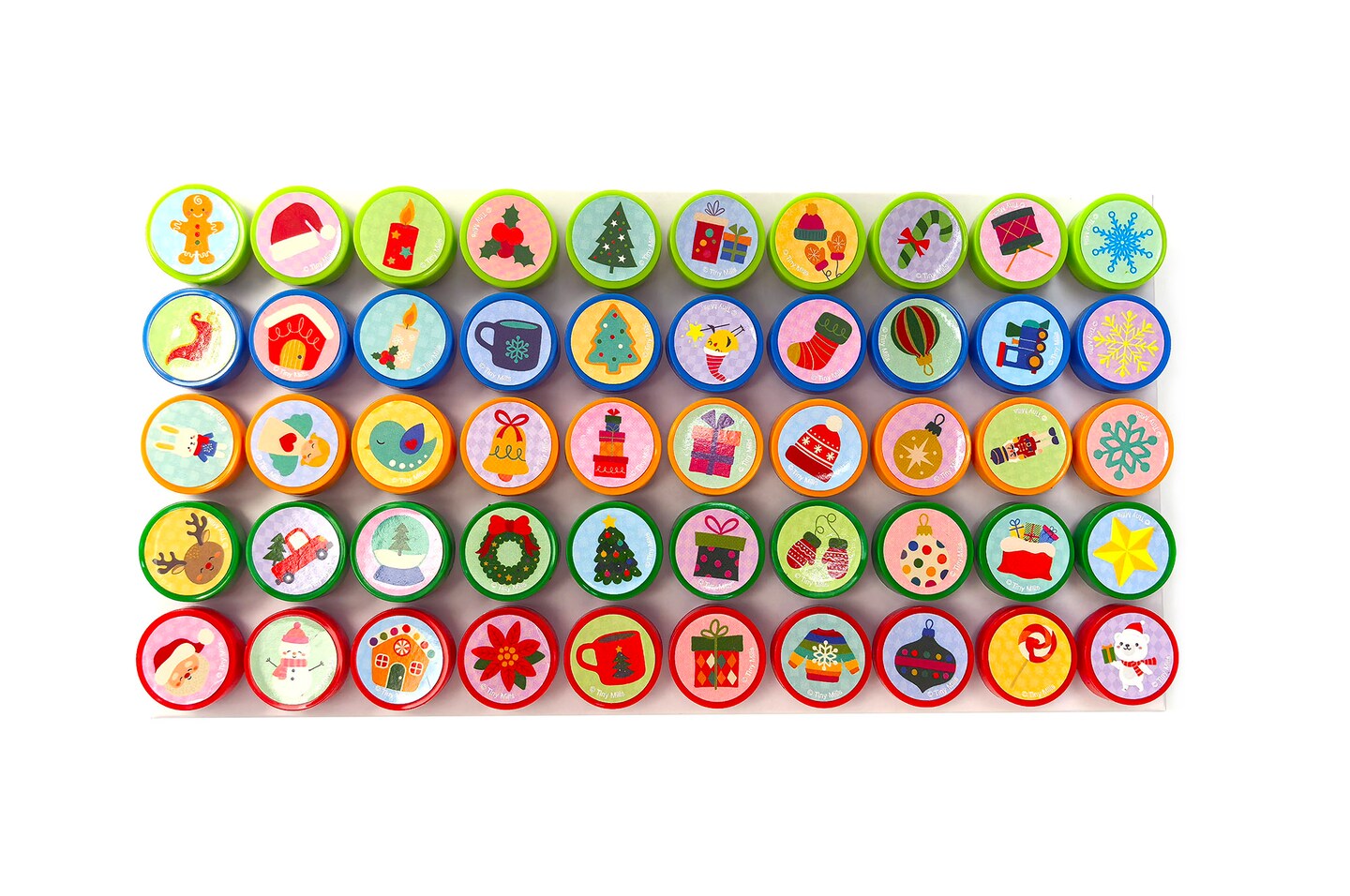 TINYMILLS Christmas Stampers for Kids – 50 PCS Cute Kawaii Self-Inking Stampers with 50 Designs, Fun Holiday Party Favors, Classroom Rewards, Stocking Stuffers, Christmas Goodie Bag Fillers