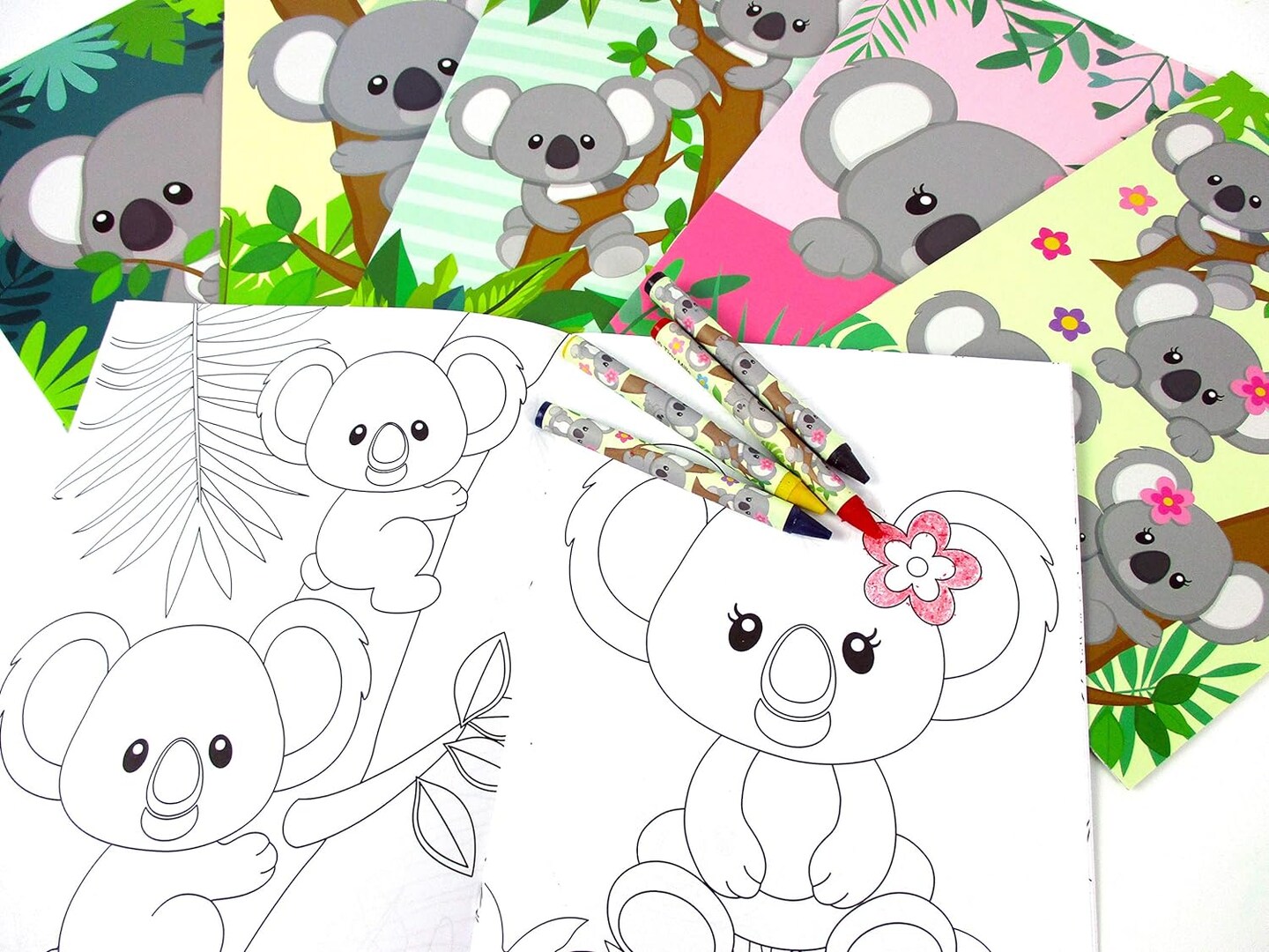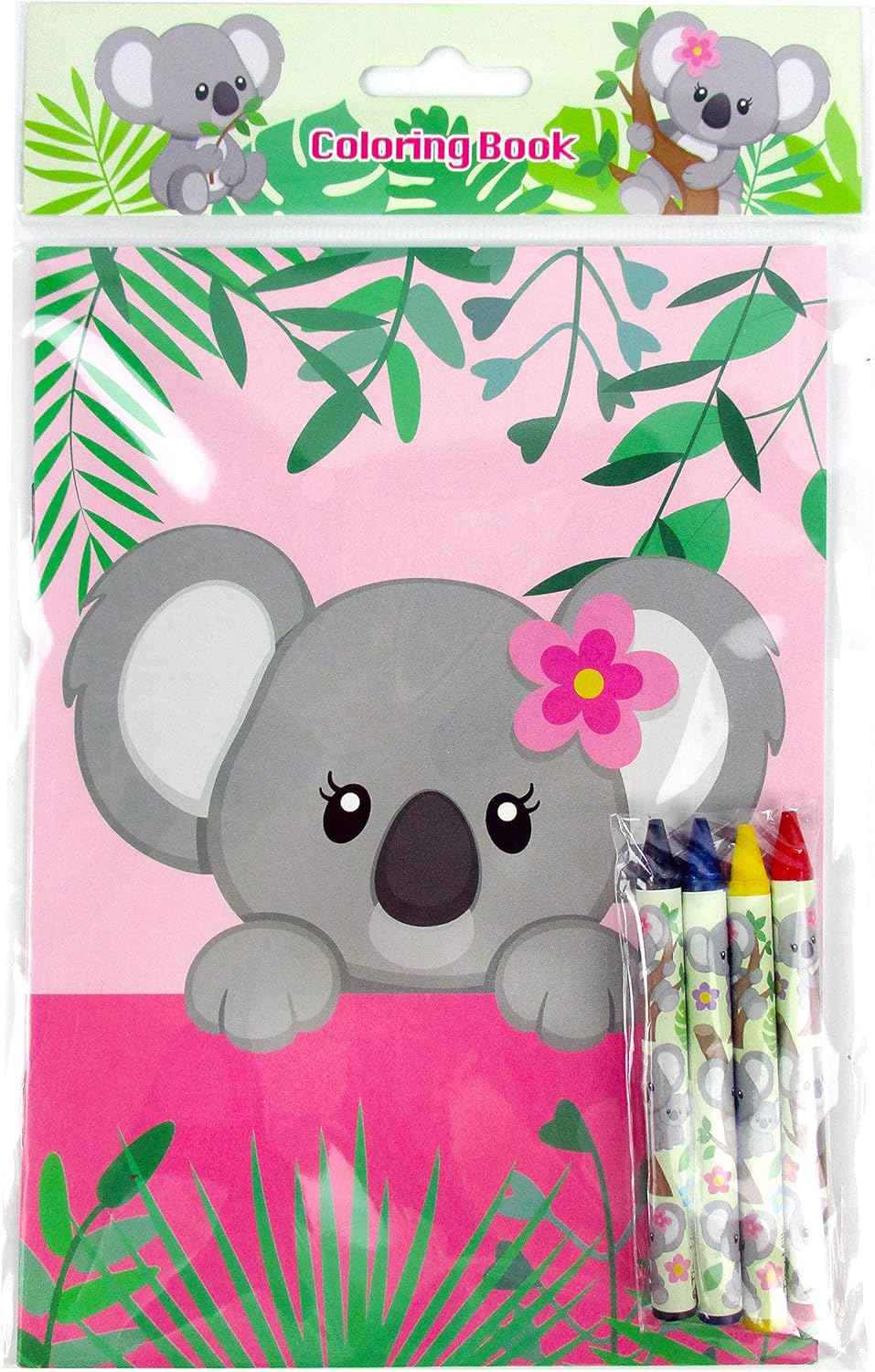 TINYMILLS Koalas Coloring Books for Kids with 12 Coloring Books and 48 Crayons, Koala Birthday Party Favors,