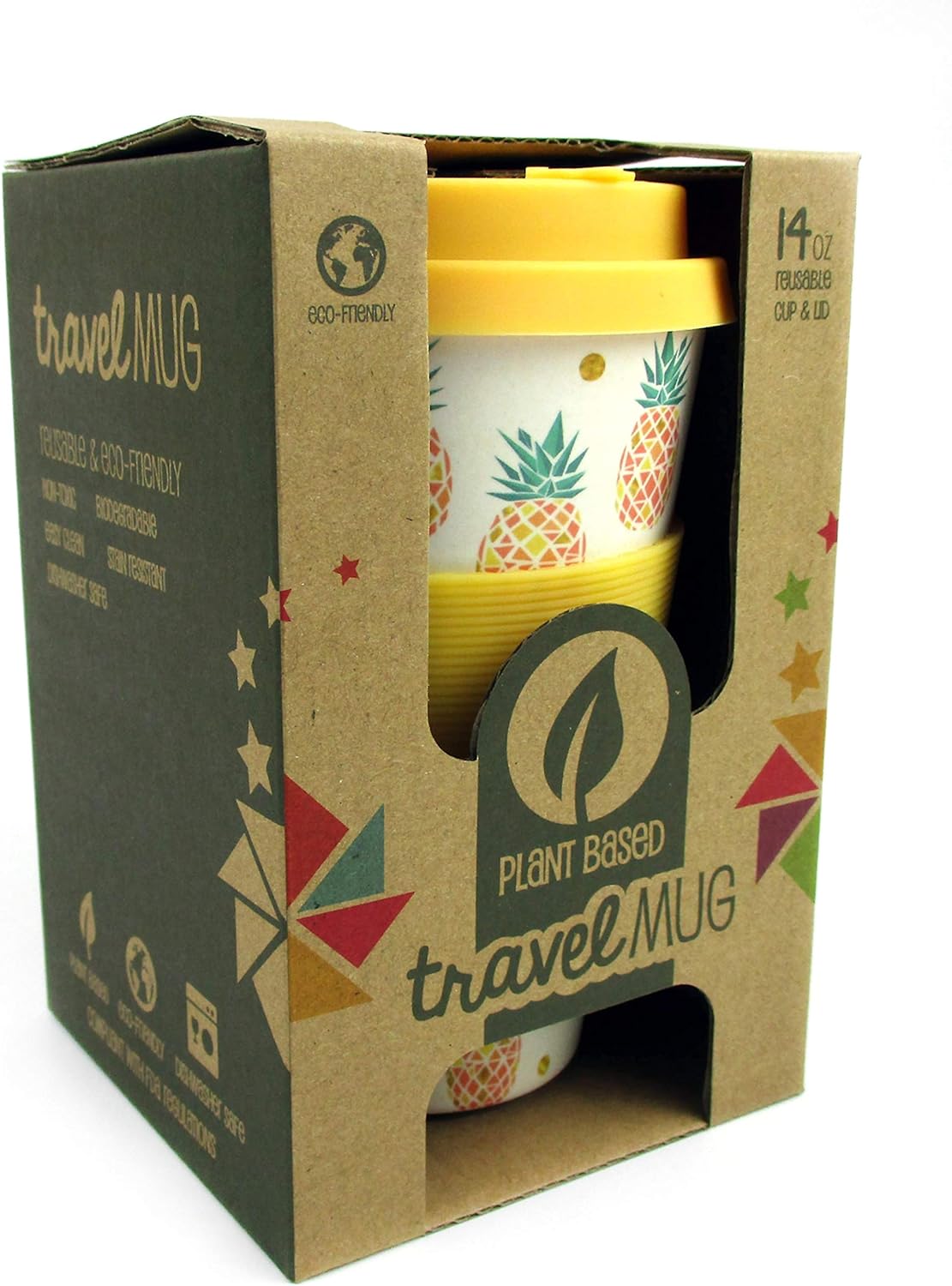 TINYMILLS Pineapple Hawaii Luau Travel Mug - Eco-Friendly Reusable Plant Fiber Travel Mug with Tropical Pineapple Design
