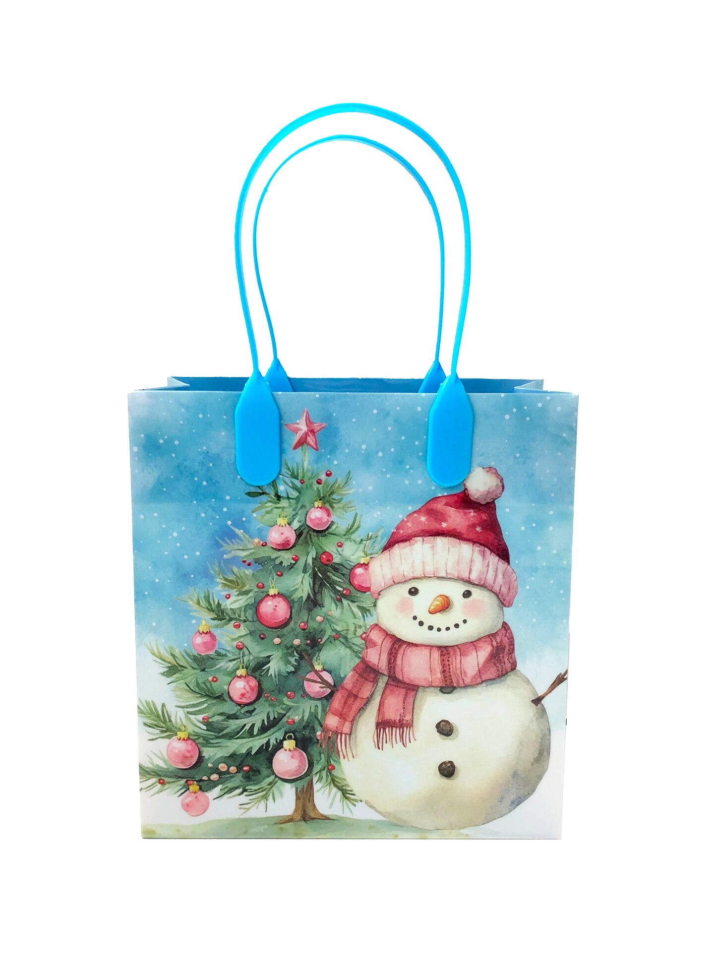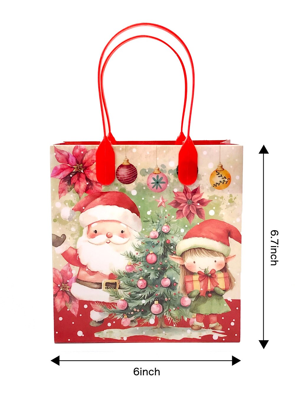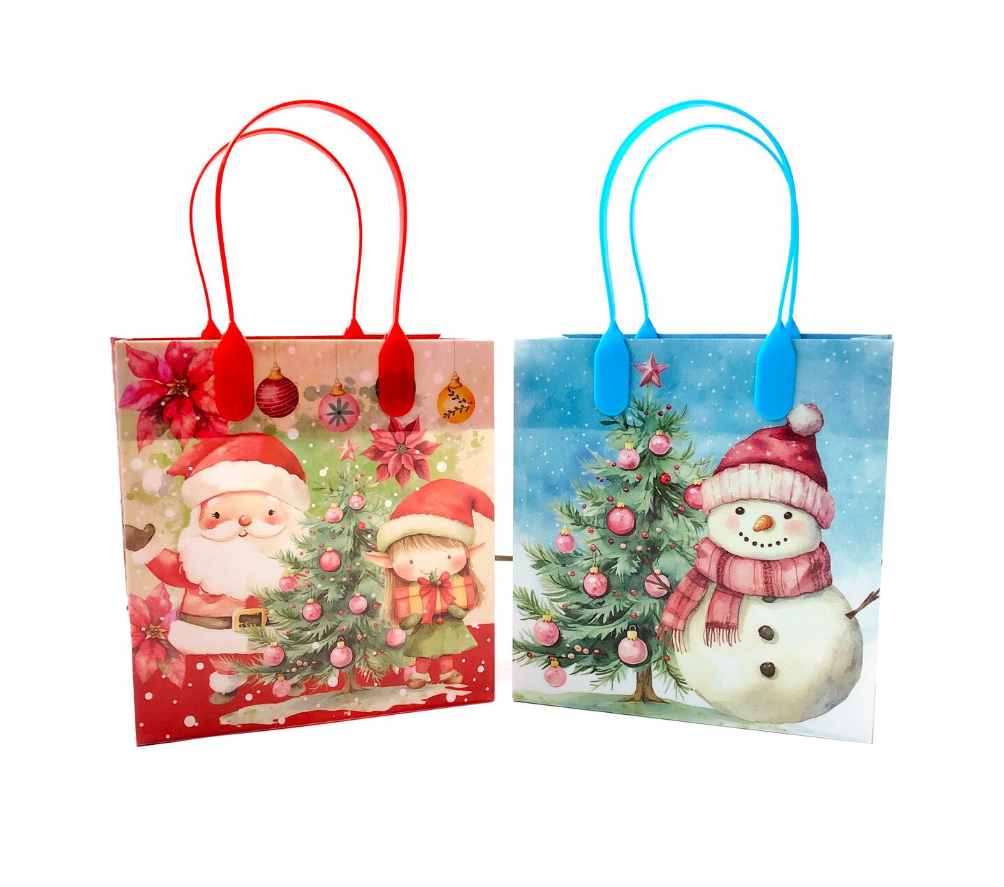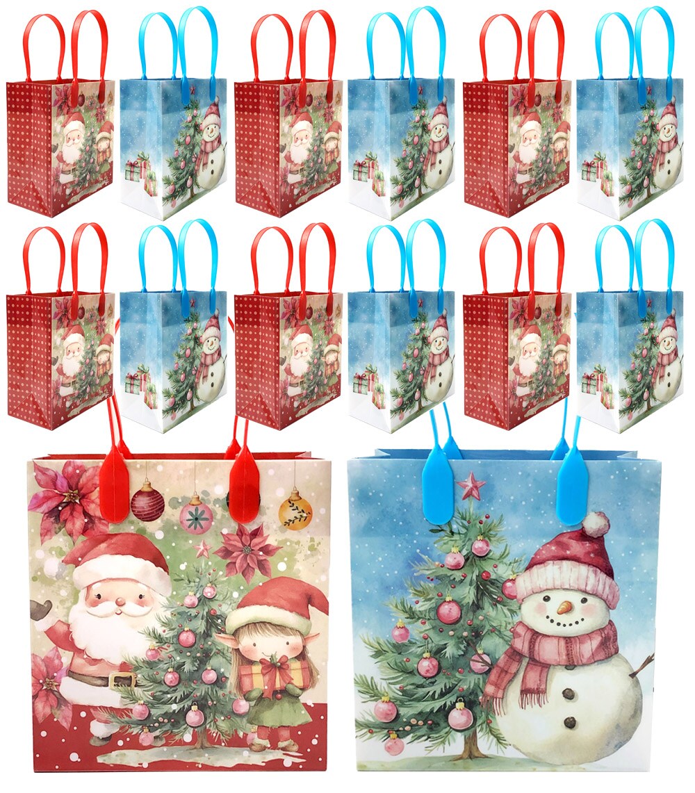 TINYMILLS Rustic Christmas Party Goody Bags 12 Pack – Cute Vintage Holiday Gift Bags for Kids, Santa & Snowman Designs, Christmas Party Favors, Candy Treat Bags, Classroom Holiday Supplies