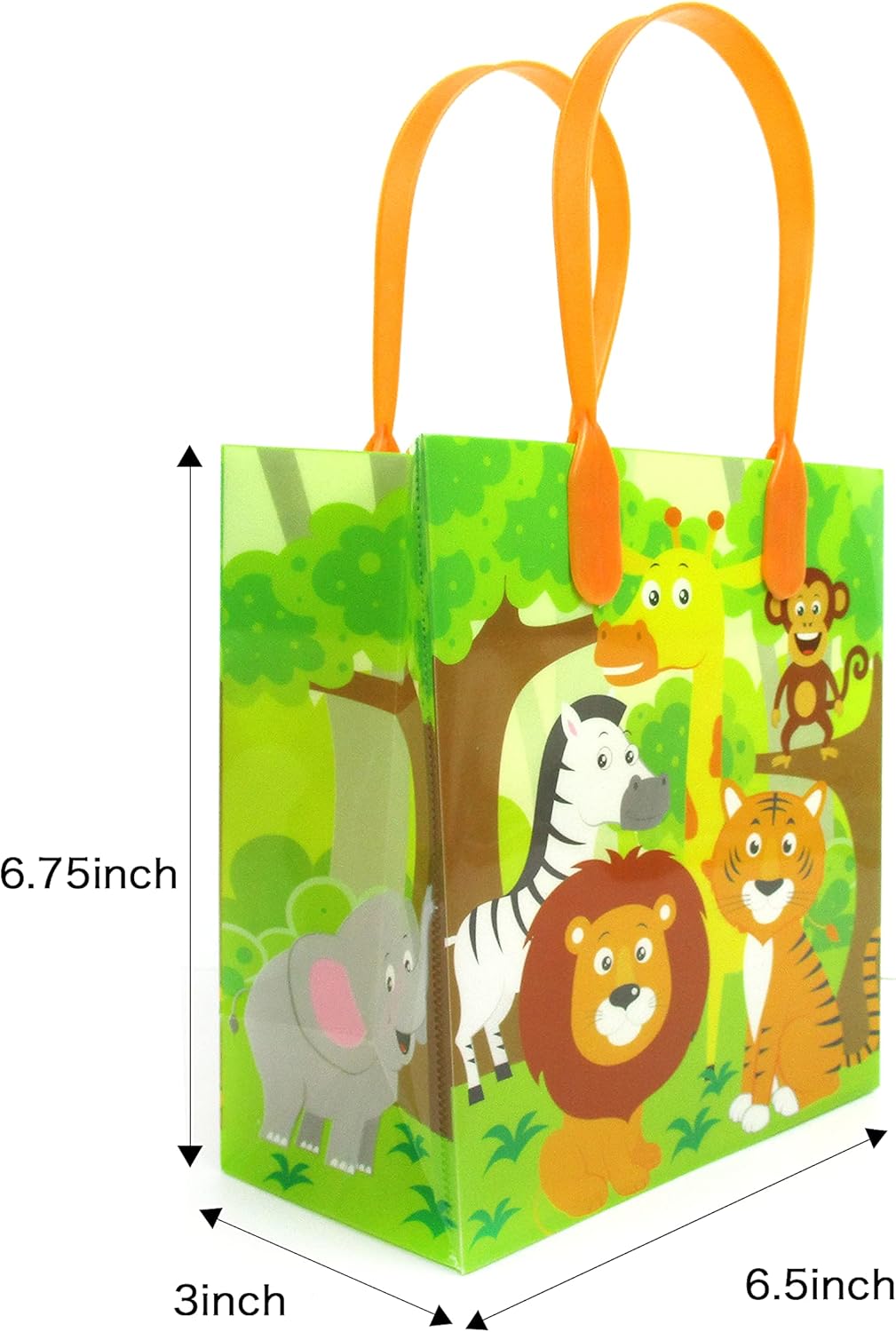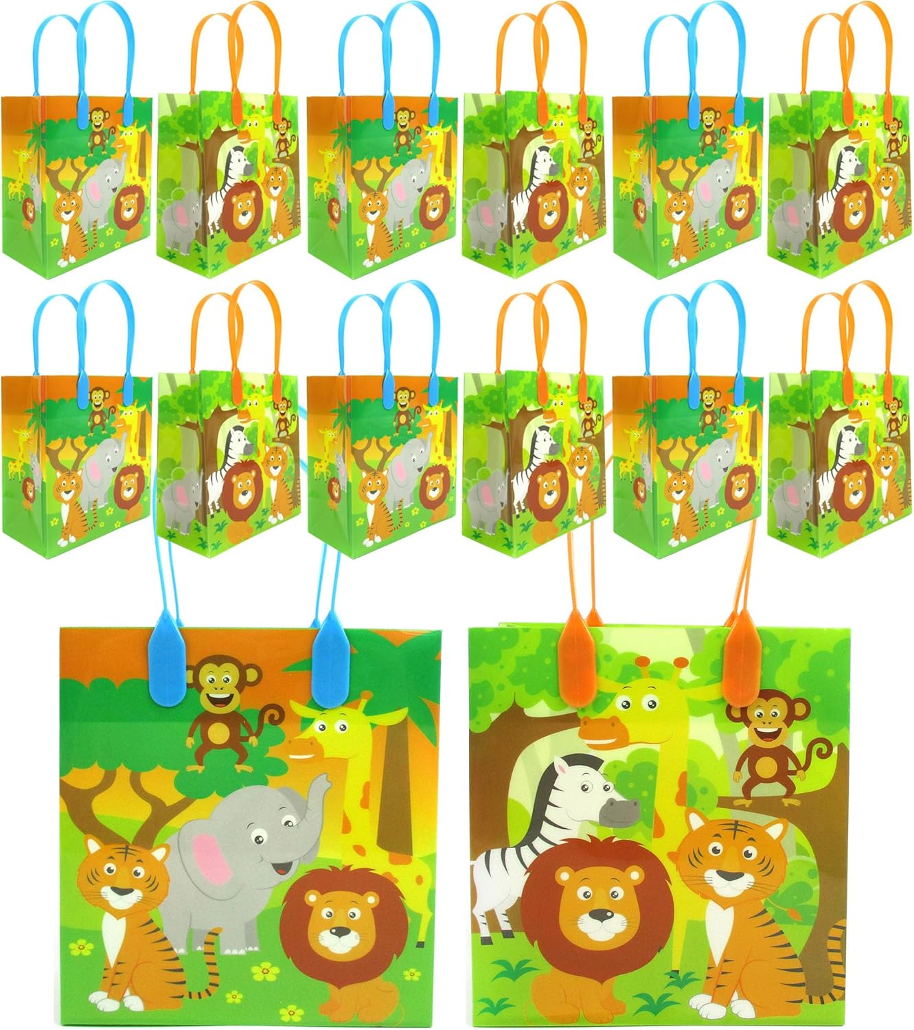TINYMILLS Safari Jungle Animals Themed Party Favor Bags Treat Bags with Handles, Safari Animals Jungle Book Candy Bags for Birthday Party Goodie Bags, Pack of 12