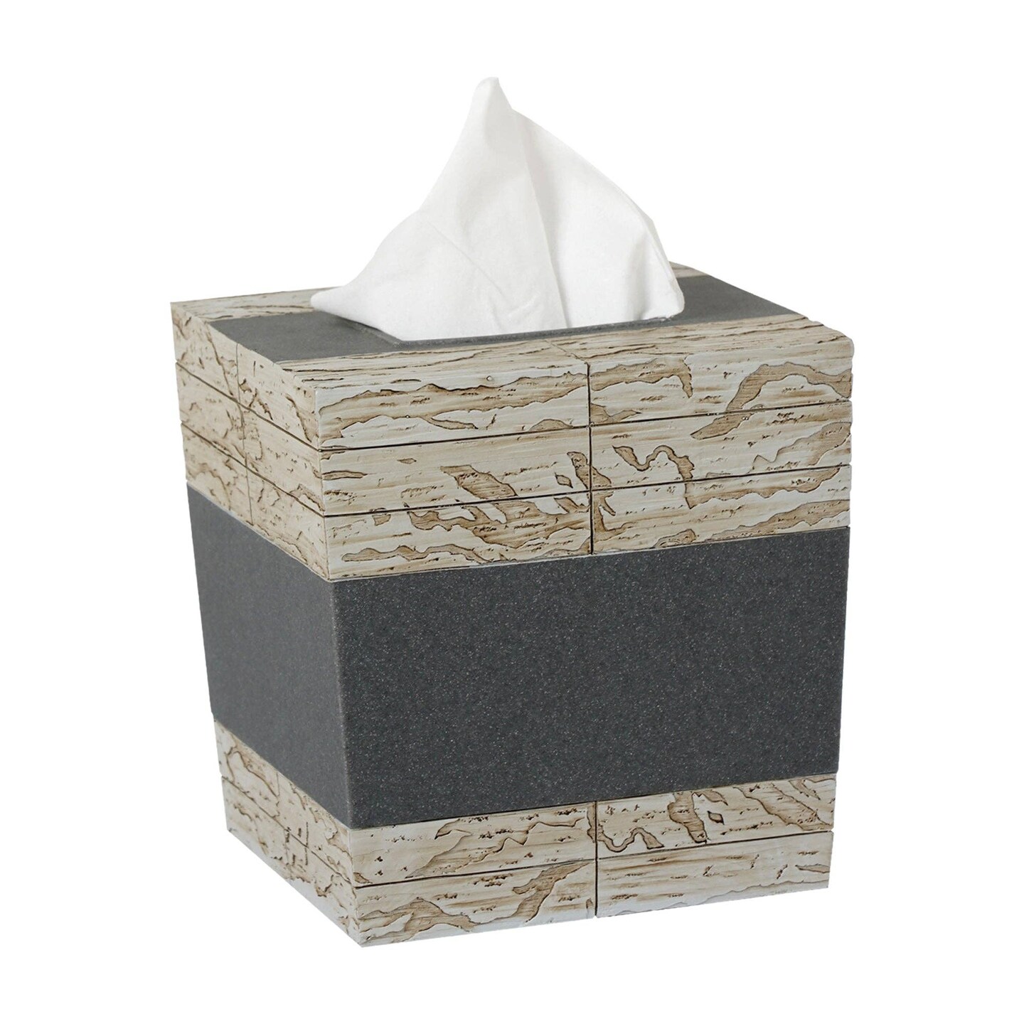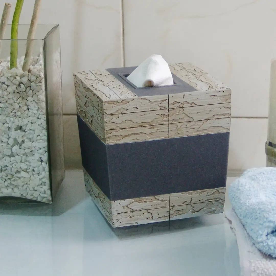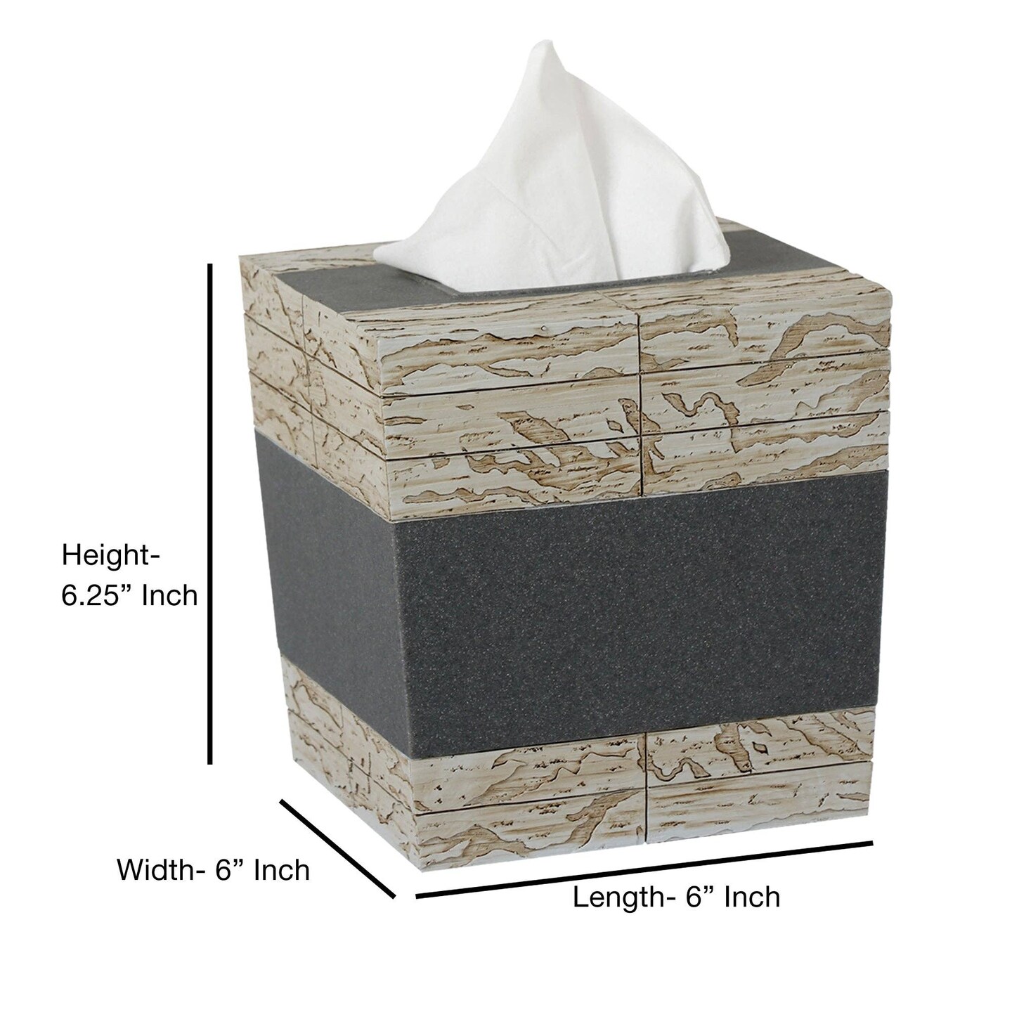 Tissue Box Holder | Decorative Stone Square Rustic Finish | Facial Tissue Cover for Bathroom Vanity & Countertops
