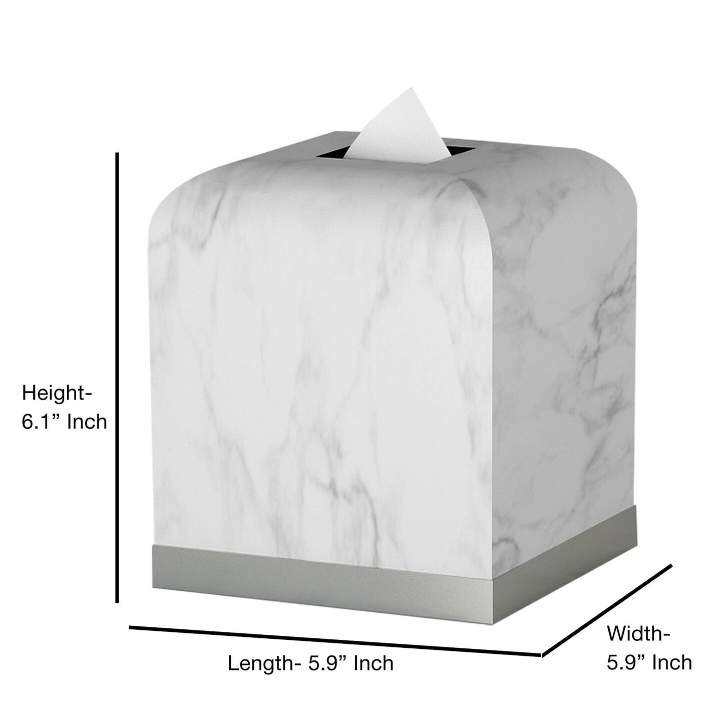 Tissue Box | White Resin & Silver Finish Square Tissue Box Holder | Bathroom & Countertops