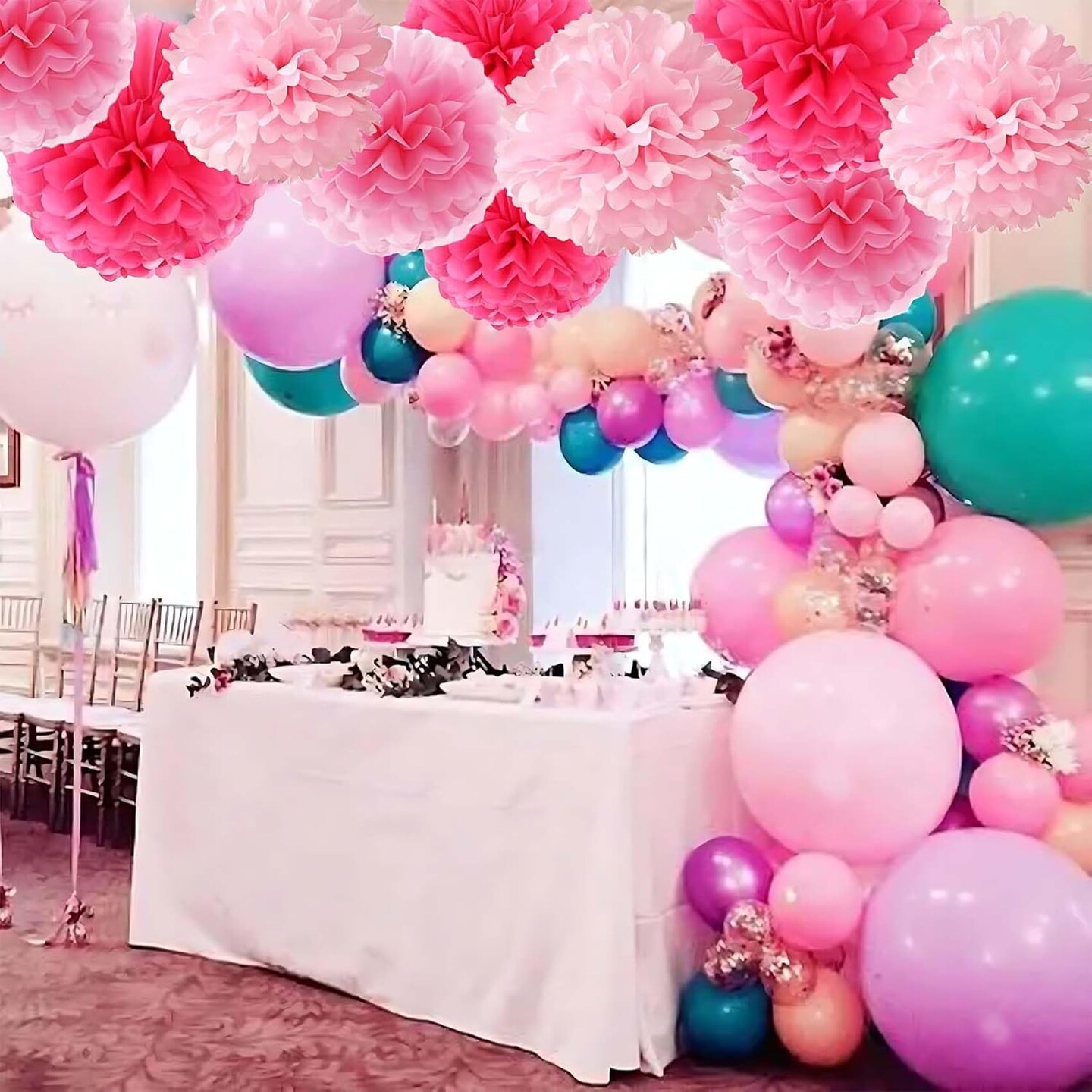 Tissue Paper Pom Poms(Pink Mix)8"L x 8"W